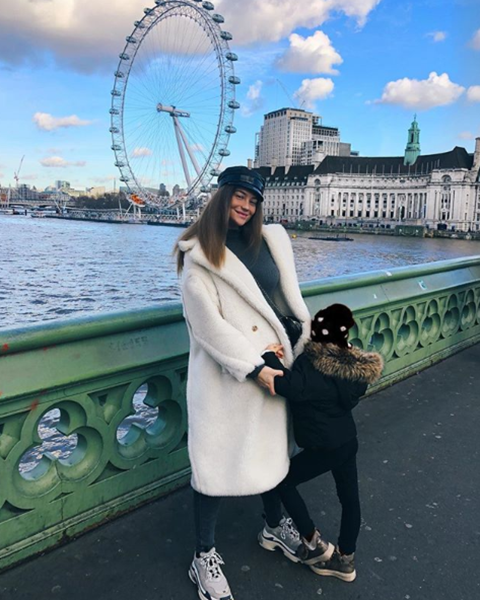 Lijepu poduzetnicu na fotki možemo vidjeti kako pozira u Londonu sa svojom nećakinjom, dok je u pozadini poznata turistička atrakcija "London Eye". Odjevena je u široki bijeli kaput koji je naveo njene obožavatelje da pomisle da ona i Mateo Kovačić očekuju prinovu.