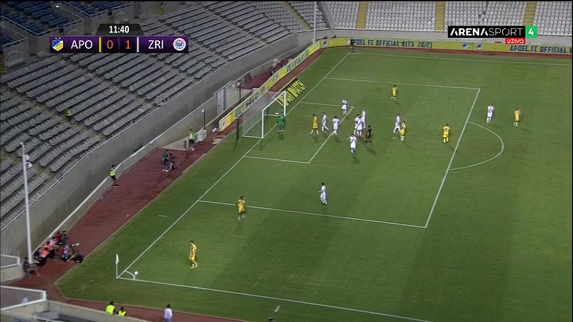 23.47' Udarac iz kuta za APOEL, vrlo opasan ubačaj ali je obrana Zrinjskog bila uspješna
