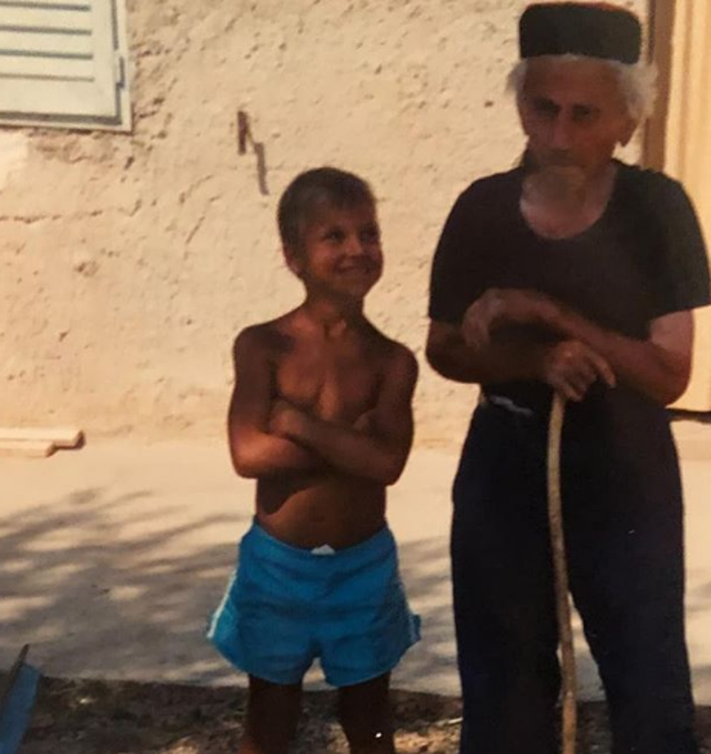 Fotografija je, sudeći po odjeći koju nosi djed, nastala na Balkanu u doba bivše Jugoslavije.