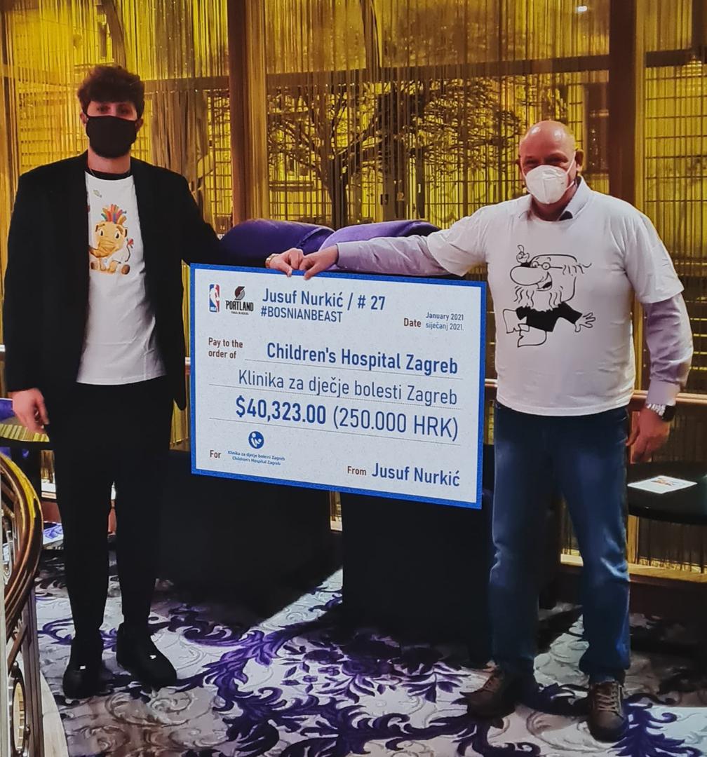 Jusuf Nurkić (26), čuveni bh. košarkaš rođen u Živinicama, južno od Tuzle, tijekom boravka u Zagrebu je na osobnu inicijativu i u dogovoru s prim. Zoranom Barčotom, dječjim kirurgom i voditeljem OHBP-a, donirao novu opremu za rad Objedinjenom hitnom bolničkom prijemu Klinike za dječje bolesti Zagreb u vrijednosti četvrt milijuna kuna.