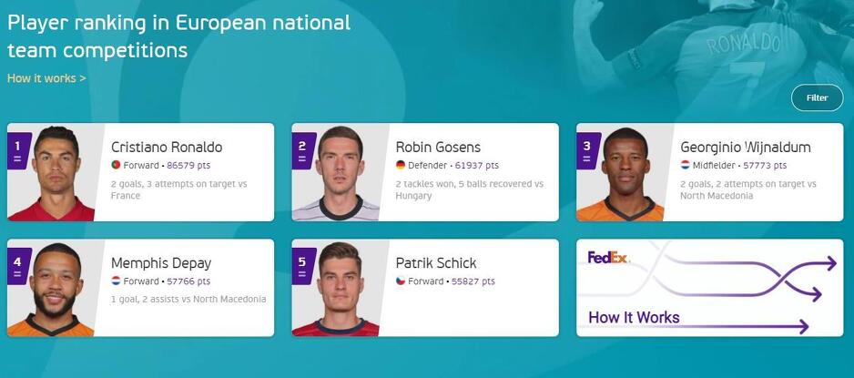 FedEx je UEFA-in službeni partner i ocjenjuje igrače na osnovu učinka na terenu pomoću posebnog algoritma koji uzima u obzir ključne statistike za svaku poziciju na terenu.