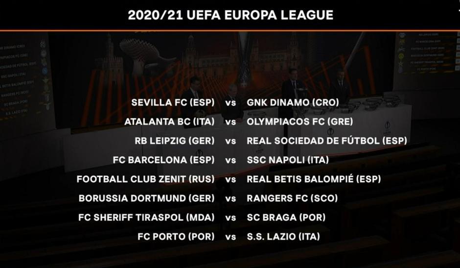 Osim Dinama i trećeplasiranih u skupinama Ligi prvaka, u ždrijebu su još bili Rangers, Sociedad, Napoli, Olympiakos, Lazio, Braga i Betis.