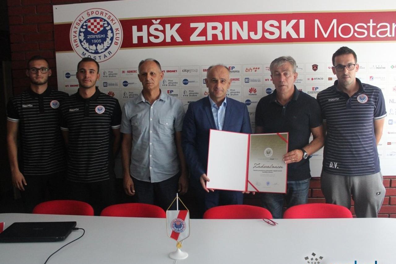 - Zahvalio bih dekanu Vasilju i prodekanu Ćorluki što su nam omogućili suradnju za boljitak naše škole nogometa. Od potpisivanja ovog ugovora bili smo na nekoliko predavanja na fakultetu, a njihovi studenti su nam svakodnevno na raspolaganju i donijeli su dosta dobroga. U tom kontekstu ostvarili smo suradnju sa studentima. Njih dvojica će kod nas biti treneri koji će raditi s najmlađim vrstama te će kroz školu prenositi na sve trenere znanje koje steknu na fakultetu. Puno možemo naučiti od njih, a oni mogu doći do novih iskustava koja mogu koristiti u usavršavanju na fakultetu - kazao je voditelj ŠN HŠK Zrinjski Dragan Perić i uručio prigodnu zahvalnicu dekanu Mariju Vasilju.