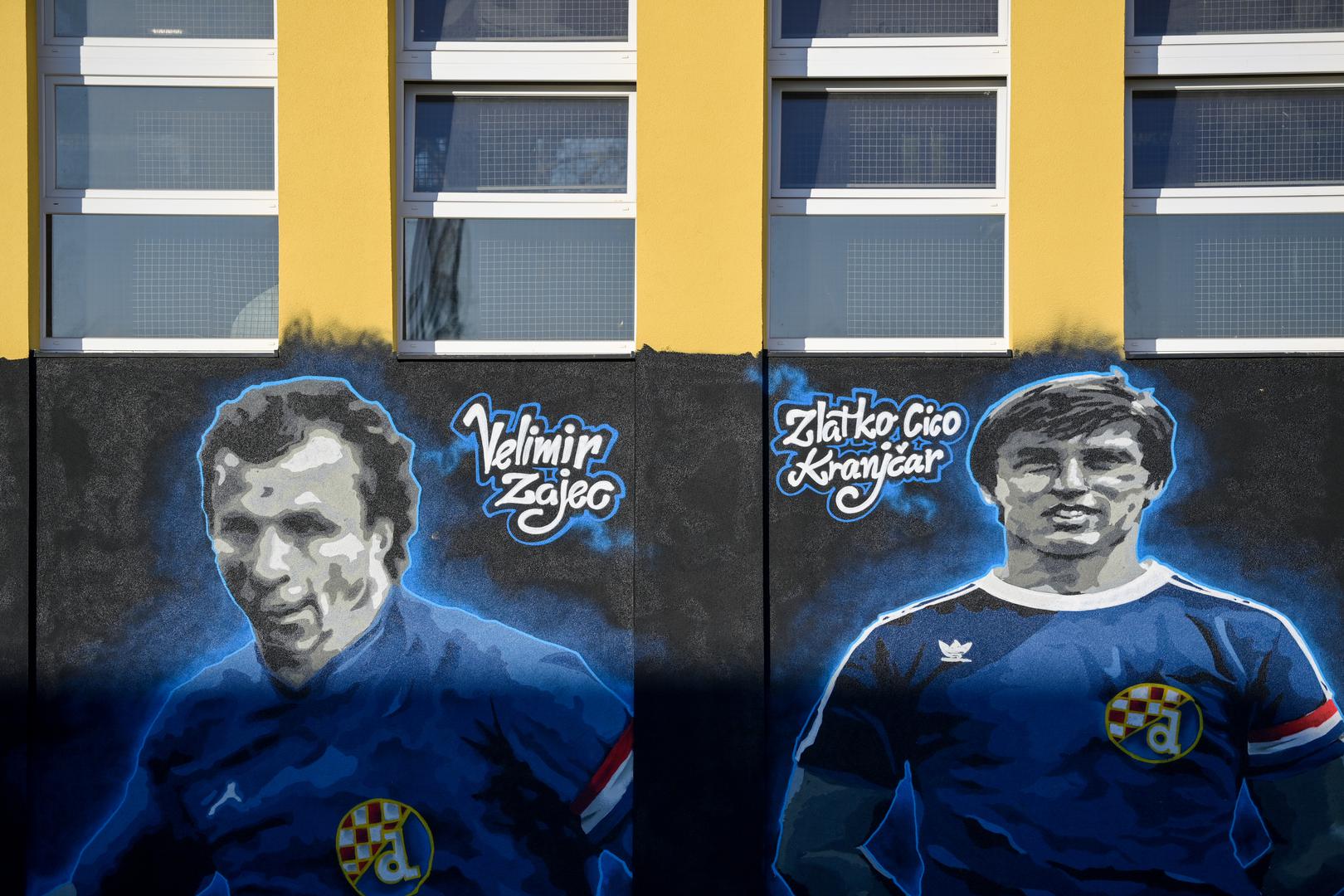 14.01.2022., Sesvete - Na osnovnoj skoli u Sesvetama murali posveceni Dinamovim kapetanima Velimiru Zajecu i Zlatku Cici Kranjcaru. Photo: Igor Soban/PIXSELL