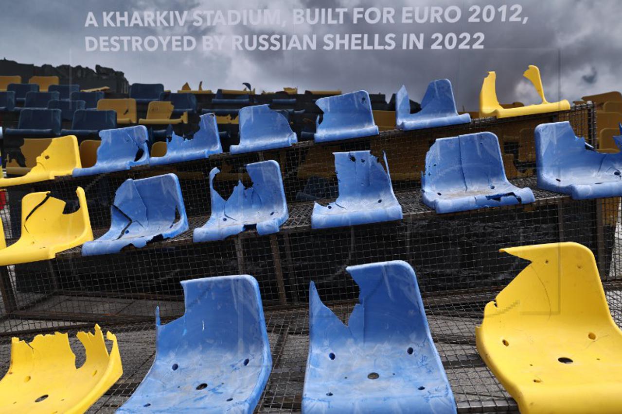Prije početka prve utakmice ukrajinske nogometne reprezentacije na ovogodišnjem EURU u središtu Muenchena su u prisutnosti predsjednika Ukrajinskog nogometnog saveza Andrija Ševčenka izložene sjedalice stadiona u Harkivu uništene ruskim granatiranjem, a kao podsjetnik na rat koji se vodi u toj istočnoeuropskoj zemlji.
