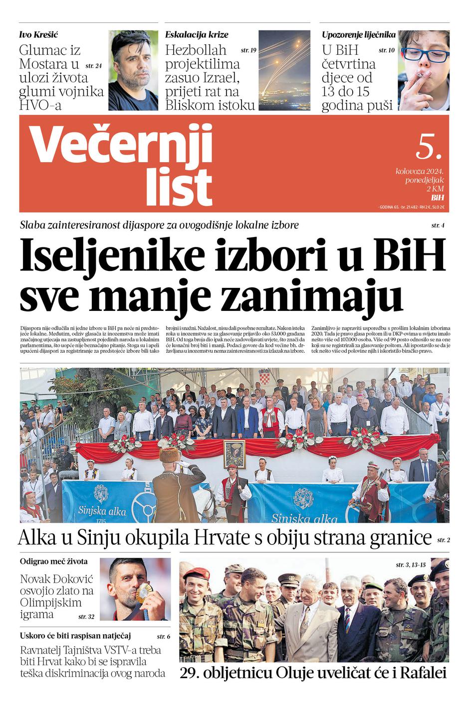 U tiskanom izdanju Večernjeg lista BiH, u ponedjeljak 5. kolovoza 2024. godine, donosimo pregršt kvalitetnog i zanimljivog sadržaja.