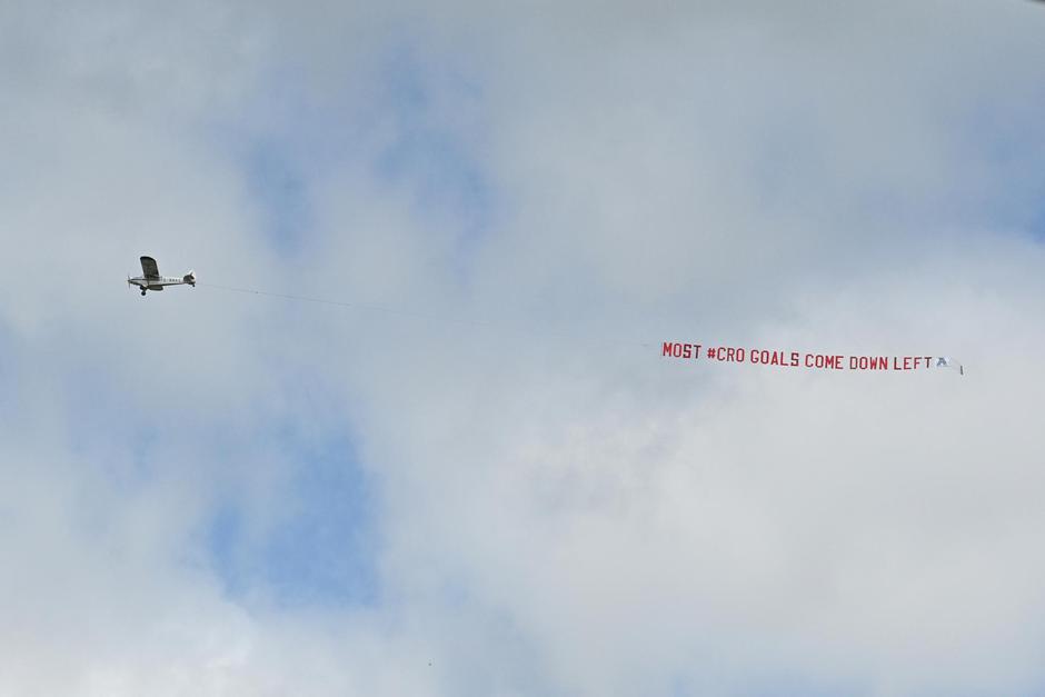 Naravno, igračima se u prvi mah to što ih nadlijeće zrakoplov nije činilo čudnim, no neki su se nakon pogleda u nebo zaustavili i kroz smijeh prokomentirali situaciju.