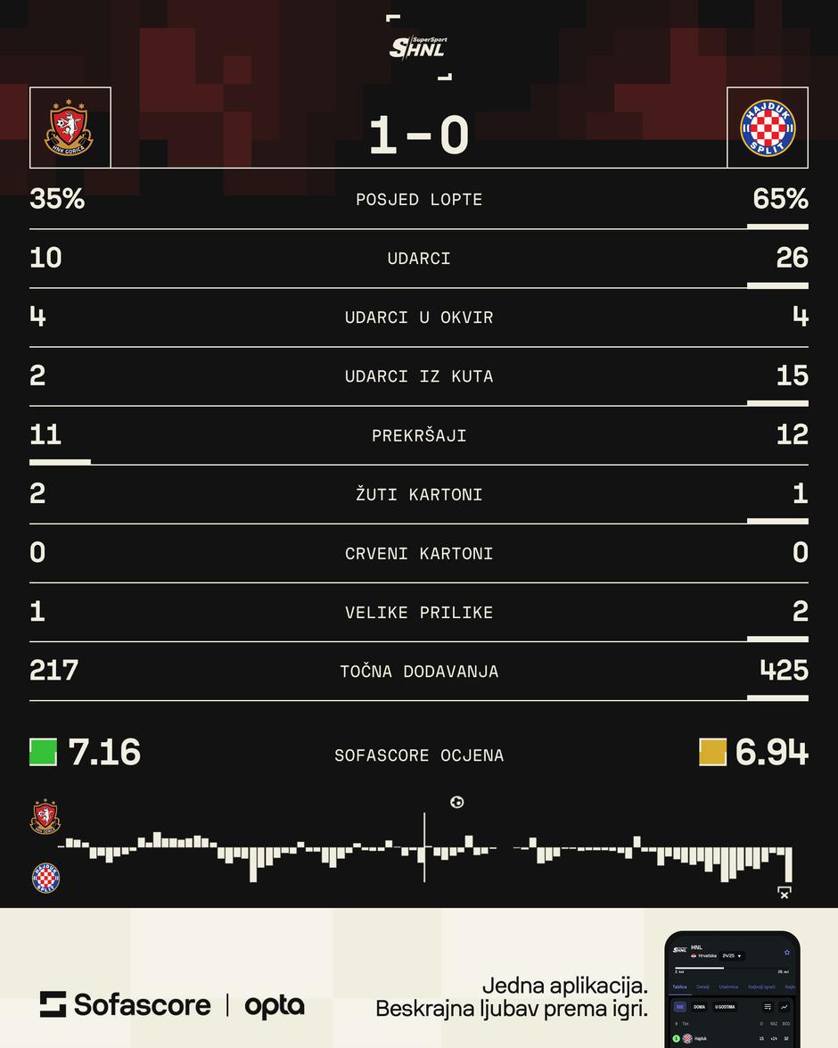 Sve je moglo biti gotovo u 88. minuti kada je Gashi, s Rakitićem na leđima, došao sam pred Lučićem, ali je nedostajalo mirnoće i preciznosti u završnici. Potom je Steenvorden spasio Goricu izbacujući loptu skoro s vratarske linije, nakon udarca Durdova.
