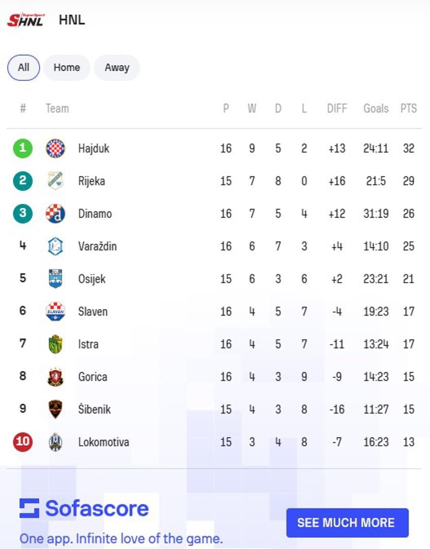 Hajduk je ostao prvi, ali nije iskoristio remi Dinama u ovom kolu. Hajduk ima šest bodova više od Dinama, te tri od Rijeke koja ima utakmicu manje.