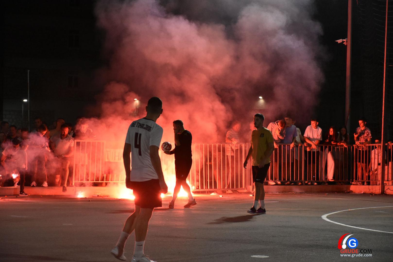 Što se finalne utakmice tiče Grude Centar je odmah preuzeo inicijativu protiv Tihaljine. Dok su se vatreni dečki, predvođeni zlatnima iz 2013. Tomom i Ivanom Perićem, pokušavali konsolidirati, doživjeli su već u 3. minuti prvi šok. Stanko Marić je doslovno uzeo loptu iz nogu zadnjeg, osim golmana, igrača Tihaljine i samo je pustio za Borisa Miloša. Popularni Bobo uletio je kao u najboljim danima i zabio za 1:0. Već u 5. minuti bilo je 2:0, kad je Stanko Marić zabio gol nakon školske akcije. Galić je dao Ivanu Ćorluki, Ivan bratu Anti, a Ante je, precizno preko cijelog terena, poslao loptu za Stanka i povećao vodstvo. A već u 11. minuti, Stanko Marić na asistenciju Ivana Ćorluke zabija svoj drugi gol, ukupno treći za Centar, i priča o prvaku bila je odlučena.
