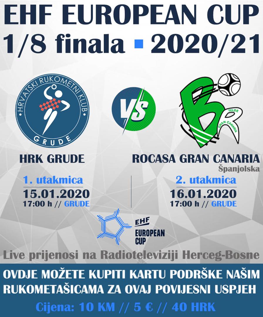 Grude će ugostiti najveću europsku utakmicu u povijesti! Klub koji je ušao u osminu finala EHF kupa HRK Grude na svom terenu igra protiv Rocasa Gran Canarie 15. i 16. siječnja 2021.