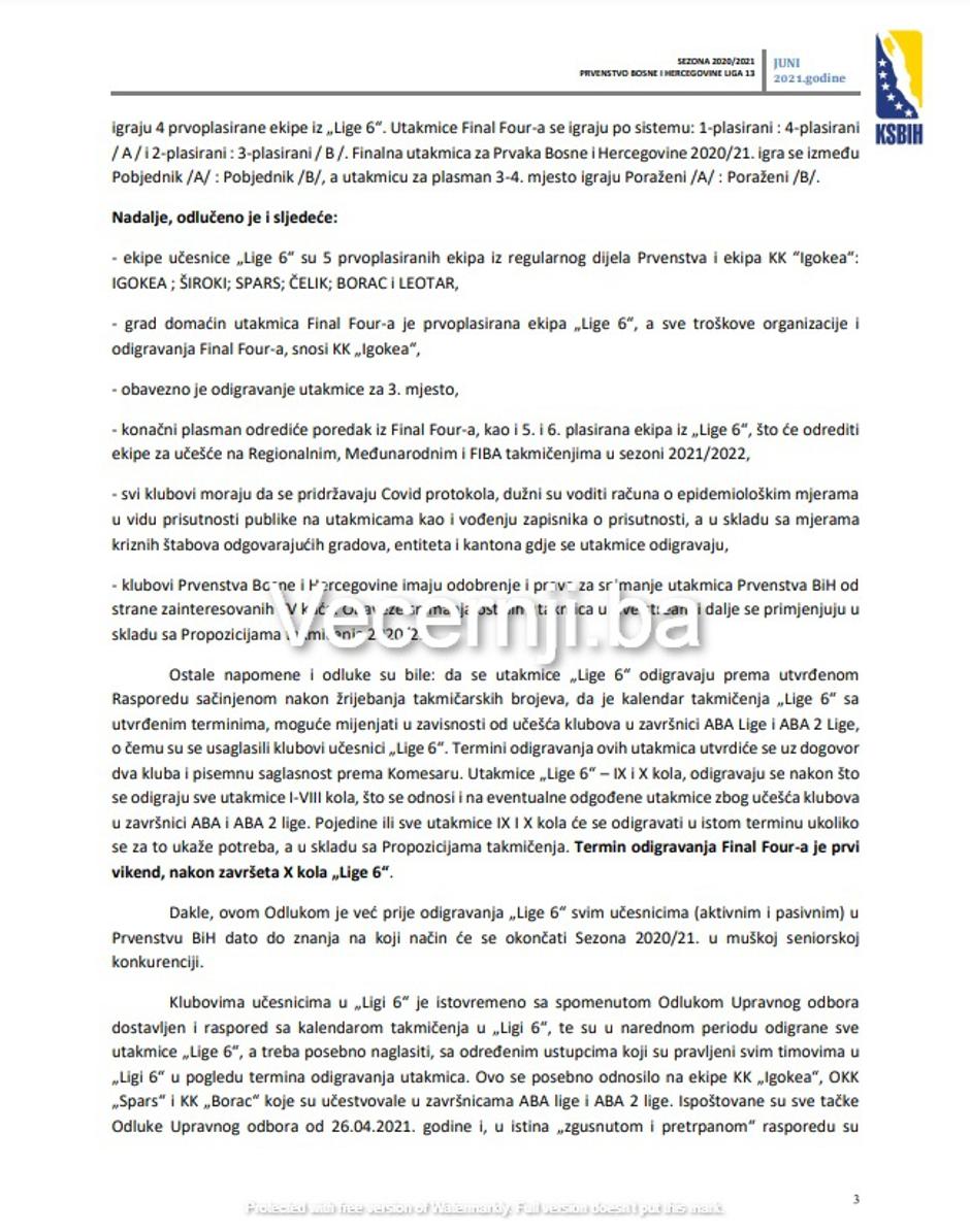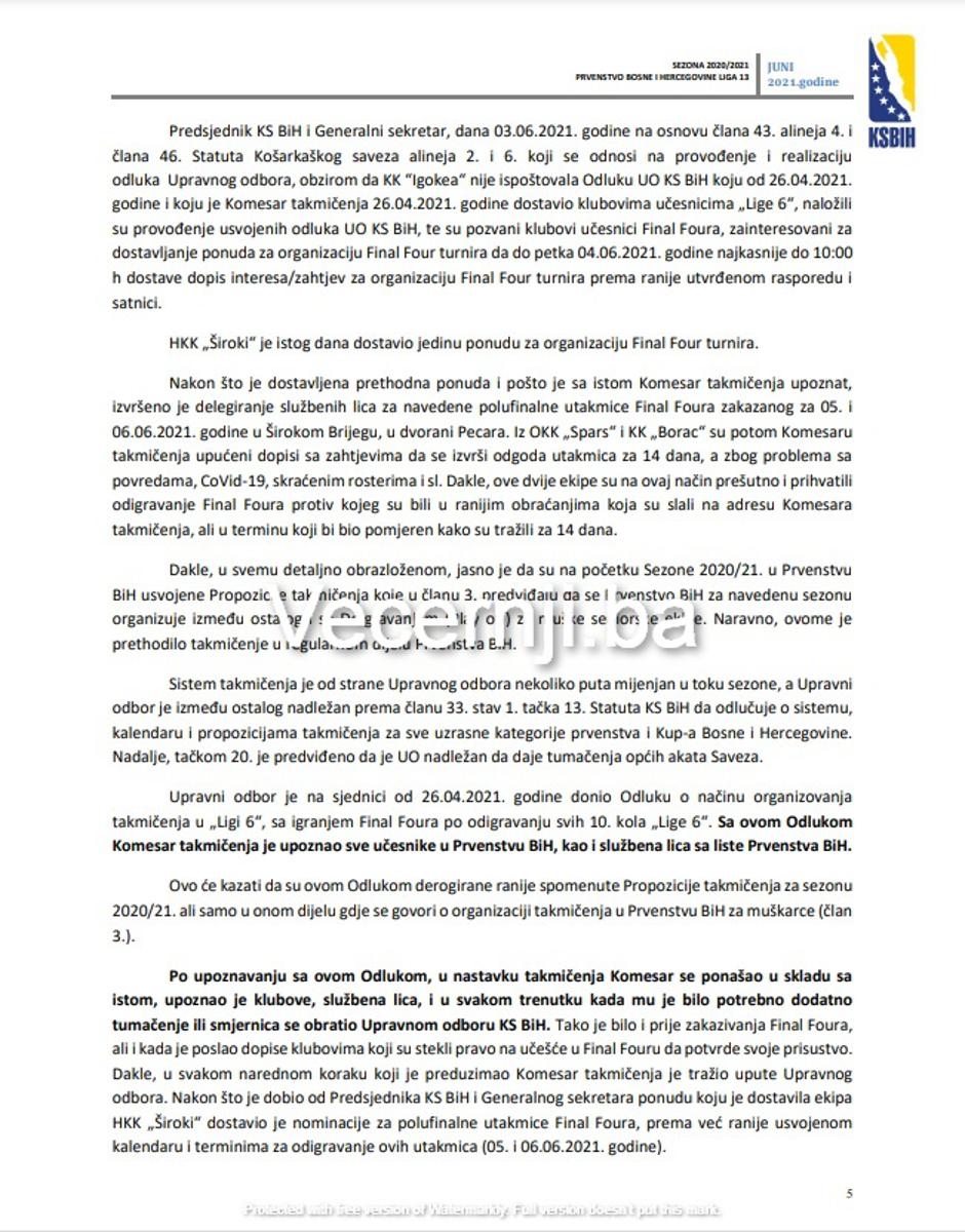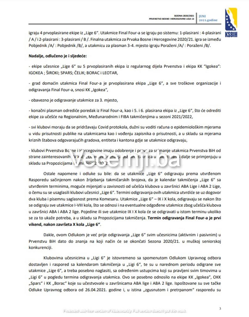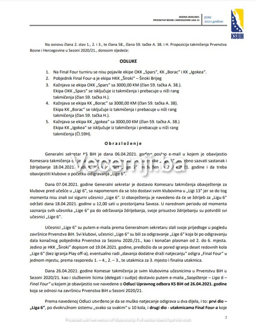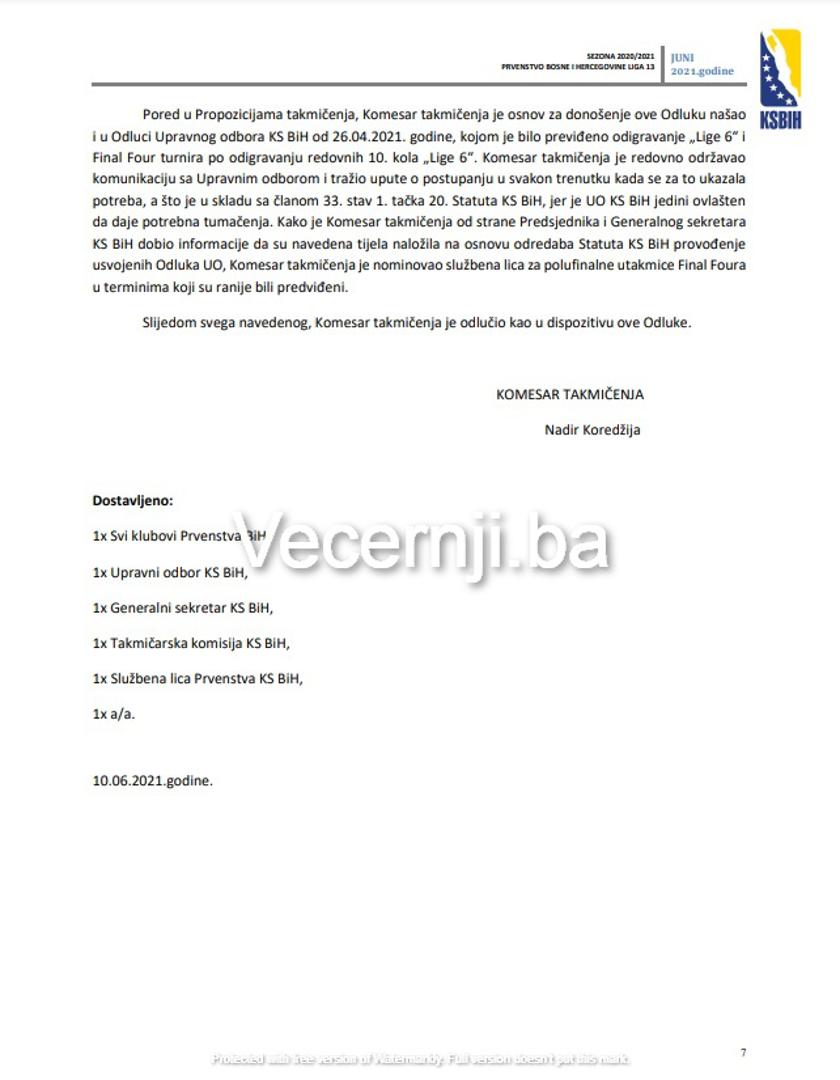 Ispod možete vidjeti Odluku povjerenika natjecanja Nadira Koredžije