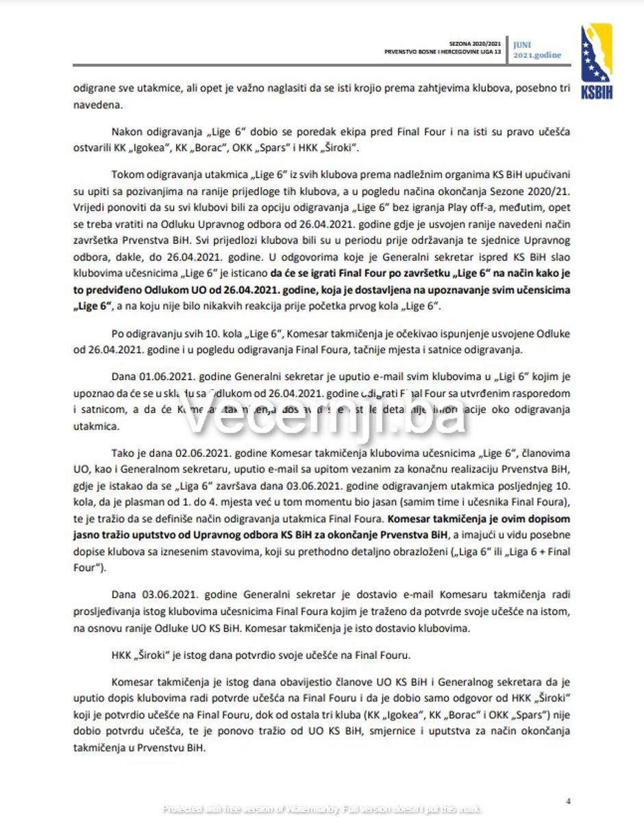Odluku je donio povjerenik natjecanja KS BiH Nadir Koredžija, postupajući po pravilnicima KS BiH. Ovogodišnji Final Four izazvao je mnoge kontroverze i to prvobitno nakon što je pet klubova sudionika Lige za prvaka poslalo dopis Košarkaškom savezu BiH da ne žele igrati završni turnir, odnosno da prihvaćaju postojeće stanje na ljestvici i da se prvoplasiranoj ekipi iz Lige za prvaka - Igokei, dodijeli titula prvaka.