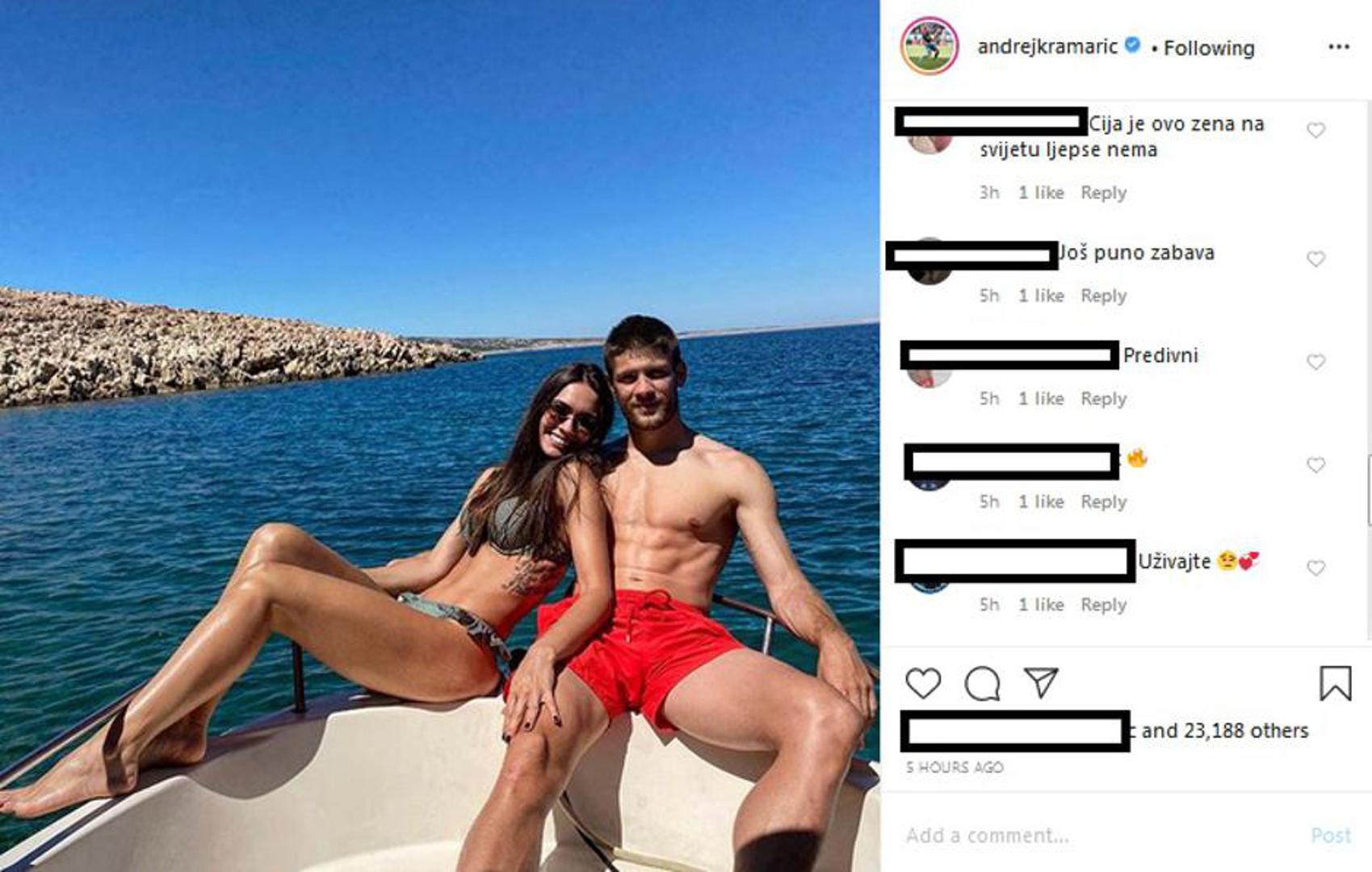 Nešto kasnije Kramarić je otkrio kako s Mijom odmara u Komiži na Visu gdje su se nakon cjelodnevnog kupanja počastili jadranskim delicijama u jednoj konobi. Par je u vezi od 2017. godine, a njihova je ljubav planula sasvim neočekivano.