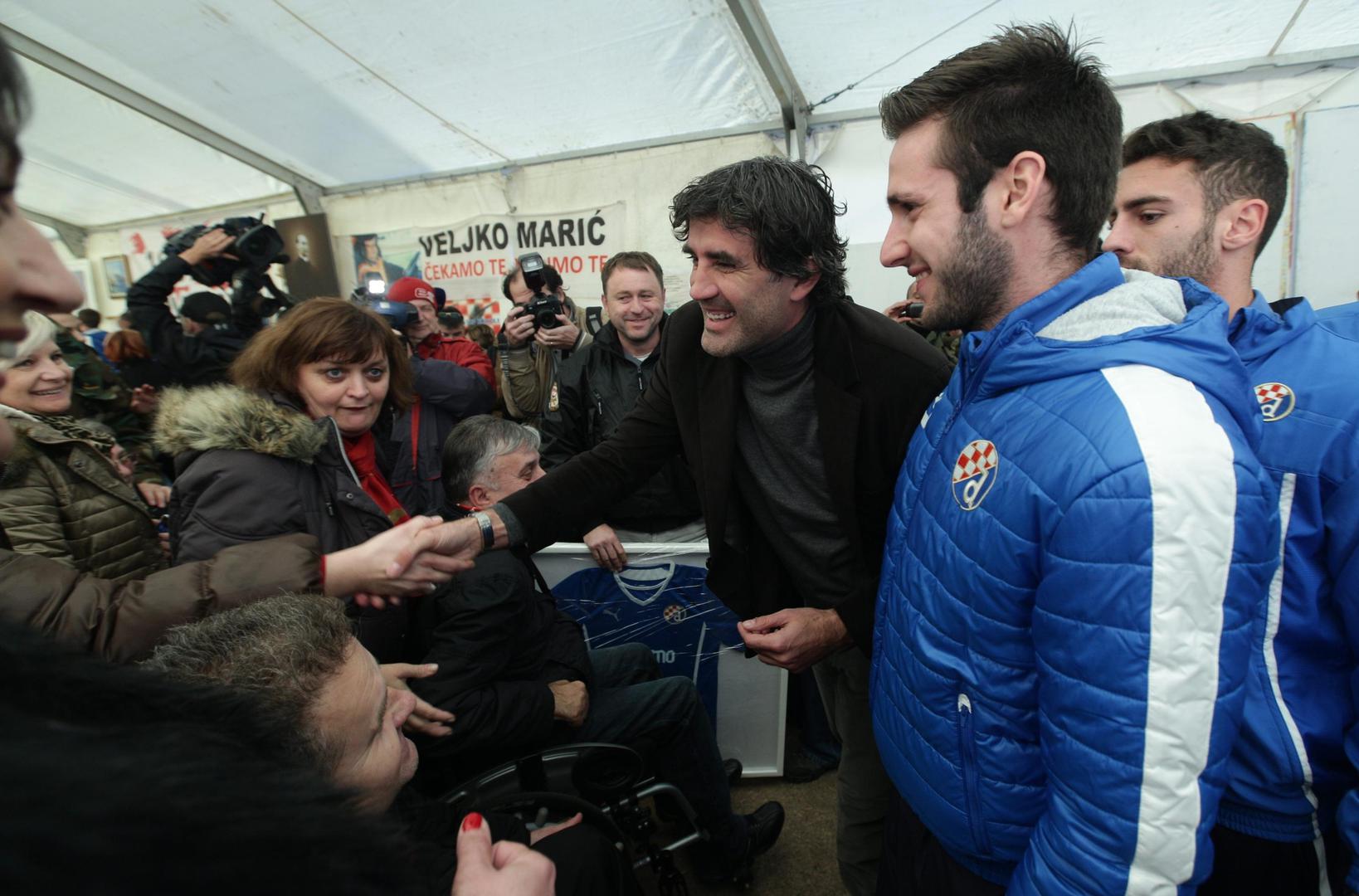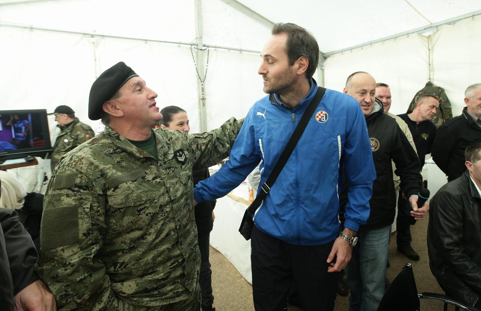 – Došli smo vam izraziti potporu i zahvaliti za sve što ste učinili u stvaranju Hrvatske pa i za nas da možemo igrati nogomet. Da nije vas, ne bi bilo nas. Sve što možemo mi ćemo vam dati. Sad smo vam došli iskazati ljubav, ali učinit ćemo sve što budemo mogli. Neka vas ovaj plavi dres sjeća na ovaj dan – rekao je Mamić te uručio dres na kojem je pisalo "mi smo s vama".
