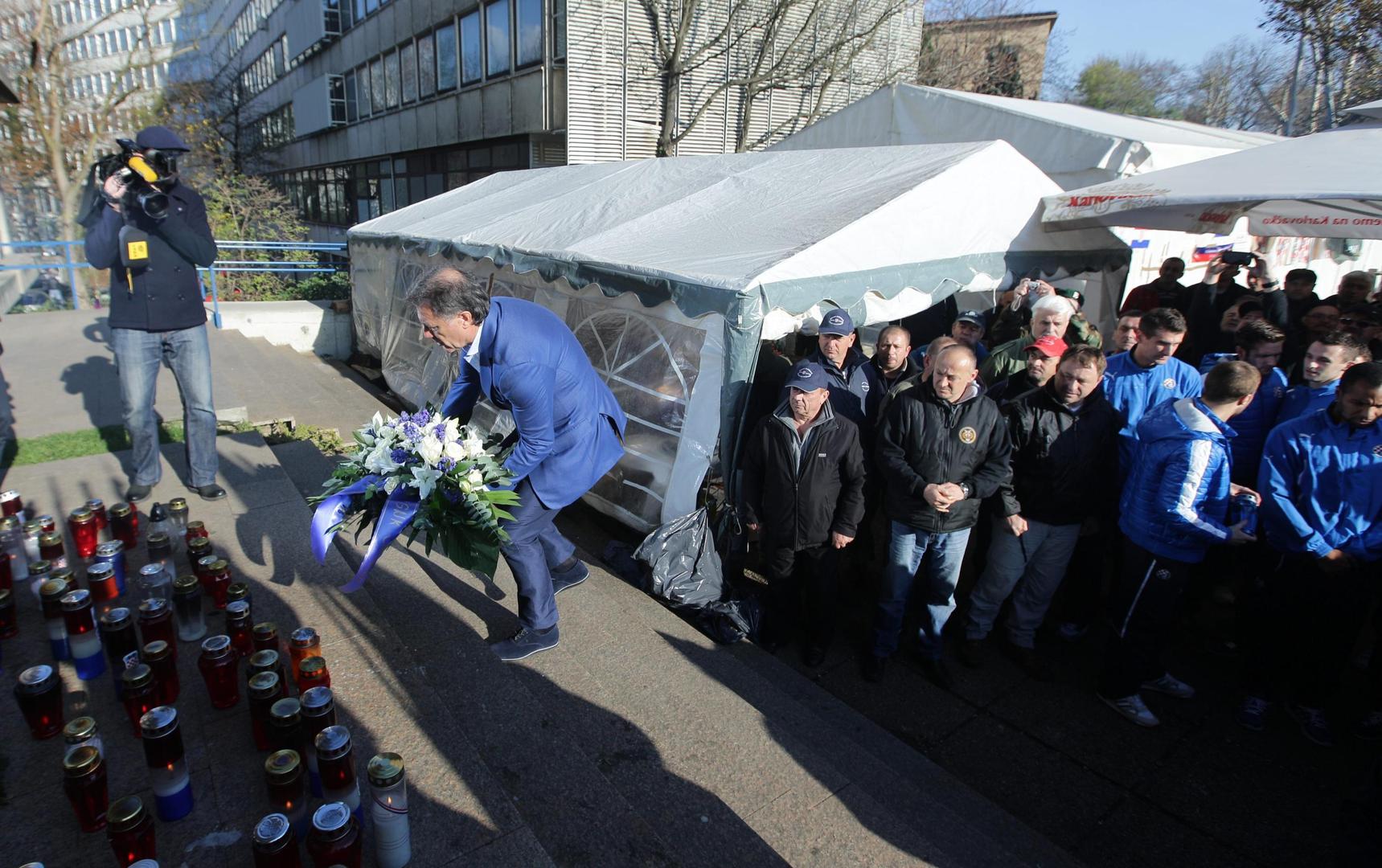 Po dolasku Mamić je položio cvijeće pred ulazom u Ministarstvo, a igrači su zapalili svijeće. Potom su otišli u šator te se rukovali sa svim prosvjednicima.