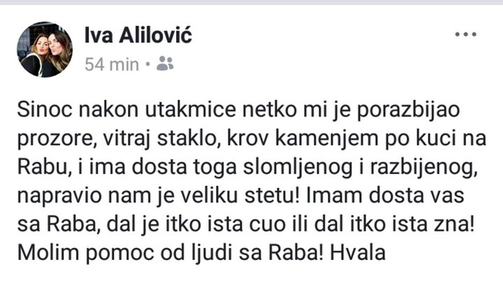Mirkova supruga Iva na svom je Facebooku objavila kako im je netko nakon utakmice kamenjem porazbijao prozore, vitraže i krov kuće na Rabu, a o slučaju se oglasila i policija.
