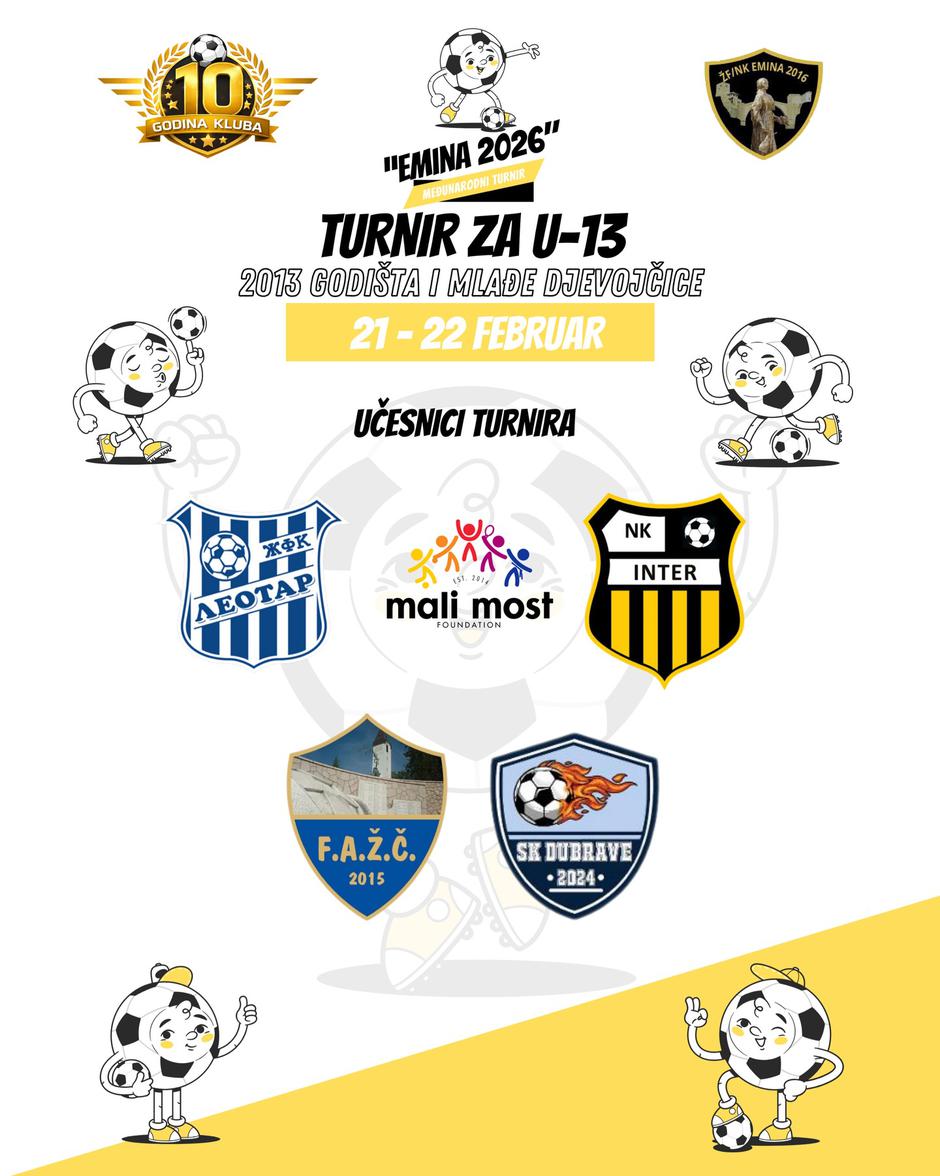 Mostar će 21. i 22. veljače biti domaćin velikog sportskog događaja – Međunarodnog turnira „Emina 2026“, koji će okupiti brojne nogometne kolektive iz regije s ciljem promocije ženskog nogometa, sportskog prijateljstva i razvoja mladih talenata.