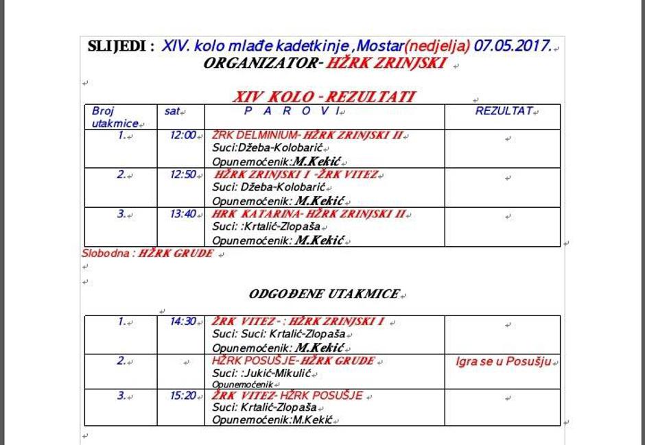 Utakmice će se održati u nedjelju, 7. svibnja u dvorani Bijeli Brijeg u Mostaru. Donosimo raspored utakmica: