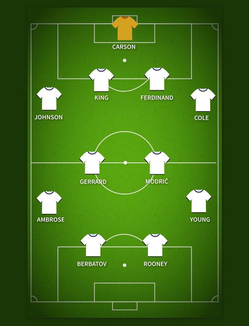 Takvi hvalospjevi Modriću uopće ne čude, slično će reći svi koji su s njima imali prilike igrati. A osim Gerrarda, u idealnih 11 Darrena Benta, društvo bi mu radili još Scott Carson, Ledley King, Rio Ferdinand, Ashley Cole, Glenn Johnson, Ashley Young, Darren Ambrose, Dimitar Berbatov i Wayne Rooney.