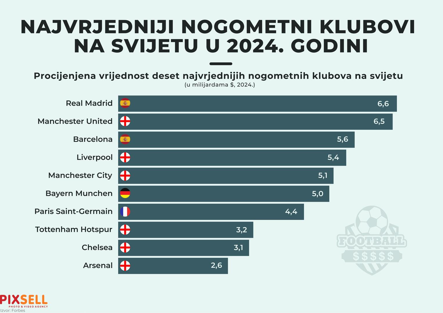 Forbes je objavio kako je Real i treću godinu za redom najvrjedniji nogometni klub, a procijenjen je na 6,6 milijardi dolara. Međutim, Manchester United jako se približio na 6,5 milijardi dolara. Slijede Barcelona (5,6 milijardi dolara), Liverpool (5,4 milijardi), potom Manchester City (5,1 milijarda), Bayern (pet milijardi dolara), PSG (4,4 milijarde), Tottenham (3,2 milijarde), Chelsea (3,1 milijarda) i Arsenal čija je vrijednost prema Forbesu 2,6 milijardi dolara.