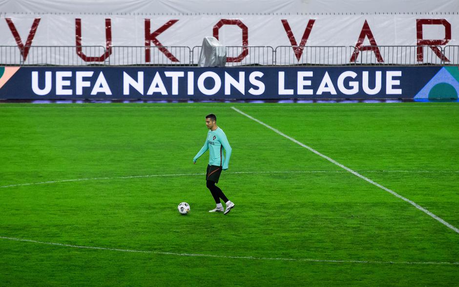 A zanimljivu fotografiju uhvatio je fotograf Pixsella. Na njoj se vidi kako Ronaldo trenira ispod transparenta na kojem piše Vukovar čija obljetnica pada se obilježava sutra.