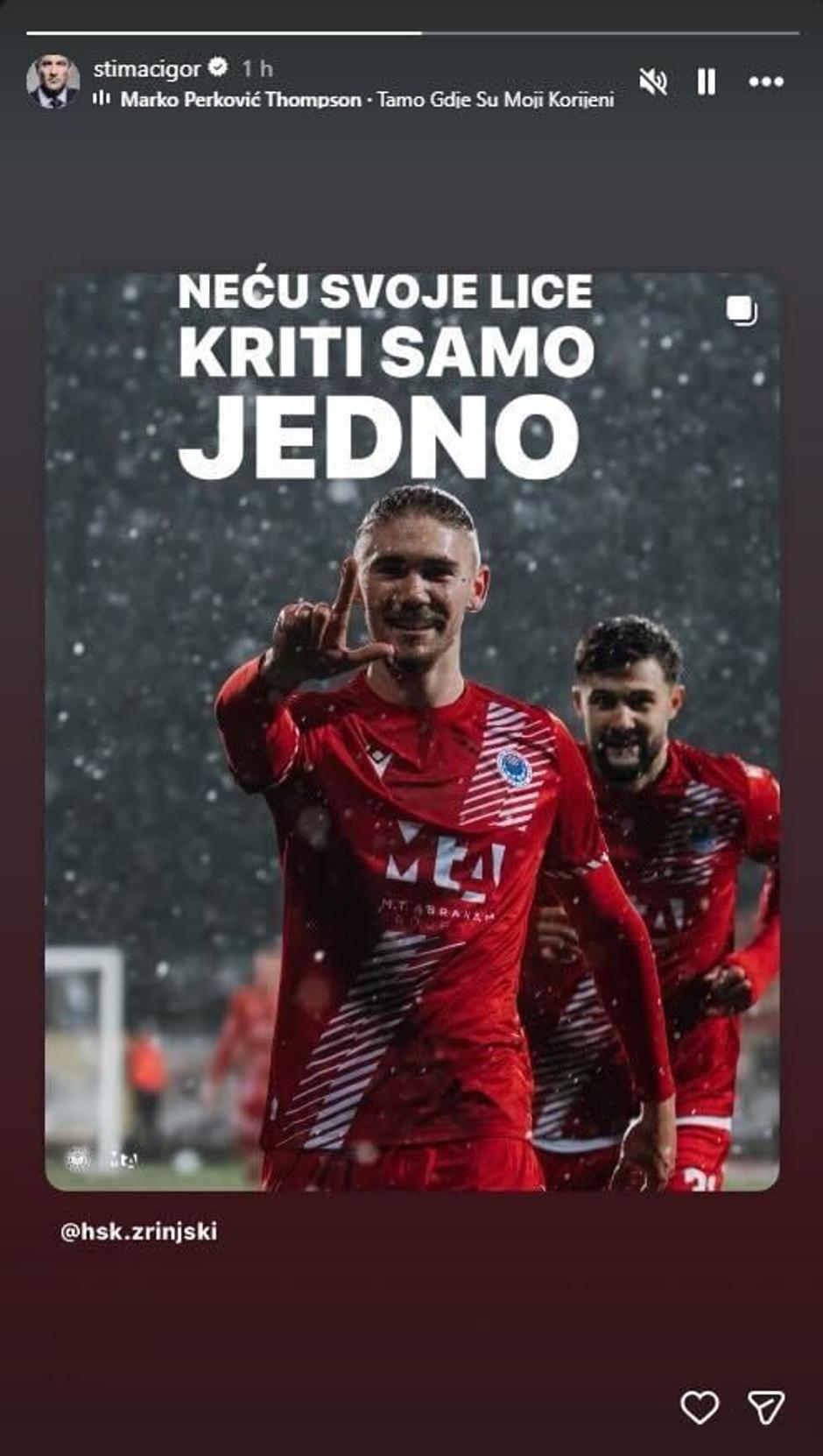 Štimcu je ova pobjeda očito puno značila pa je nakon utakmice na Instagram 'storyu' podijelio pjesmu Marka Perkovića Thompsona "Tamo gdje su moji korijeni" te dodao "Nova tri boda na kontu, mirno dočekujemo idući izazov".