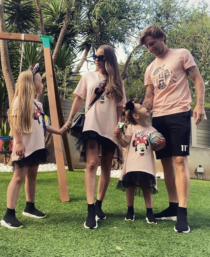 Hrvatski nogometni reprezentativac Ivan Rakitić ne krije koliko je ponosan na svoje predivne tri dame, suprugu Raquel Mauri te kćeri Altheu i Adaru. Nogometaš Barcelone i njegova supruga obožavaju modu, a tu ljubav, čini se, prenose i na svoje mezimice. Modno usklađeni Rakitići pozirali su zajedno na jednom dječjem igralištu i privukli pažnju svojim odjevnim kombinacijama.