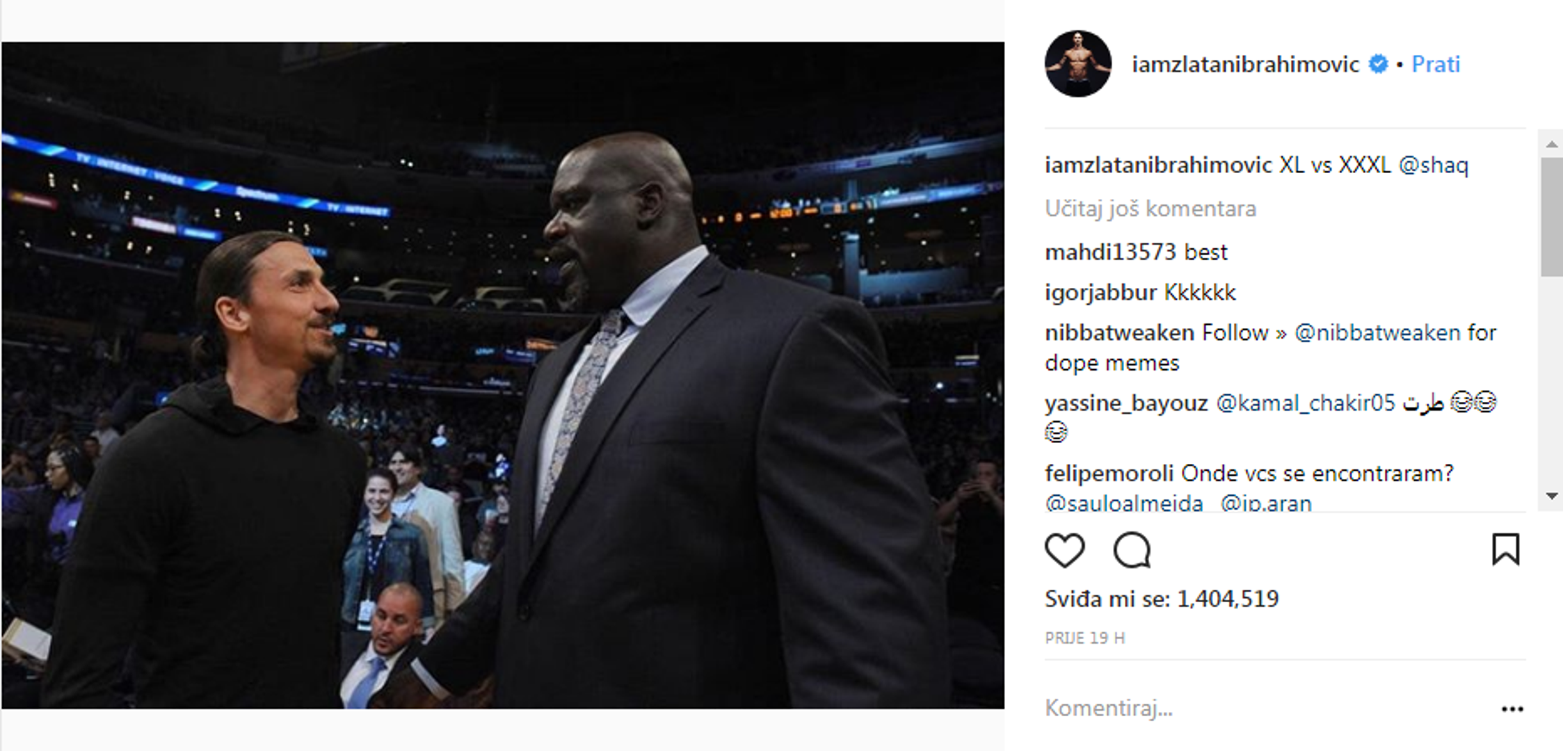 Ibra je kraj Shaqa izgledao kao dijete, a i sam je u komentaru išao u tom smjeru.