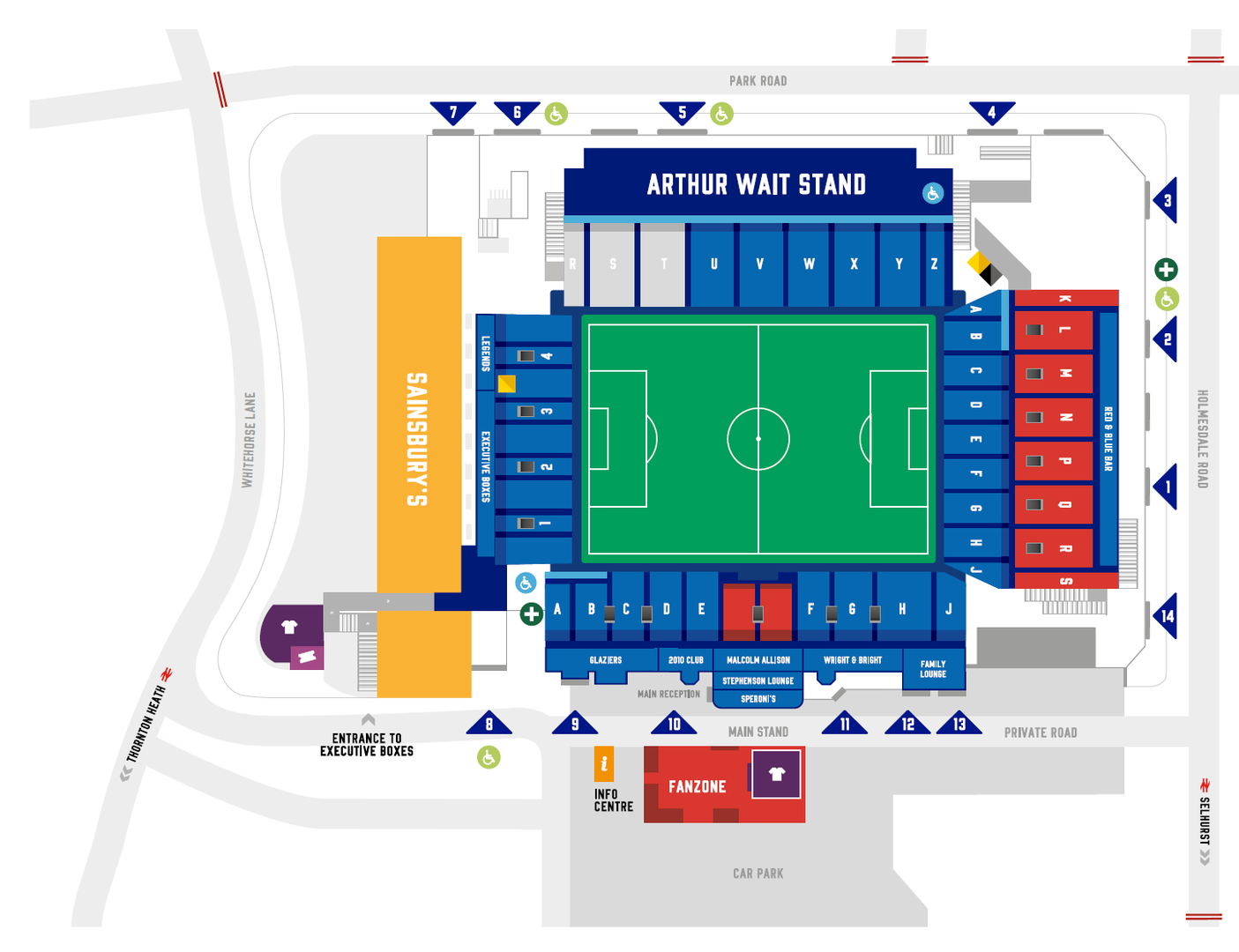 • Korteo: Od stanice Norwood Junction planiran je zajednički navijački korteo pješice sve do stadiona.