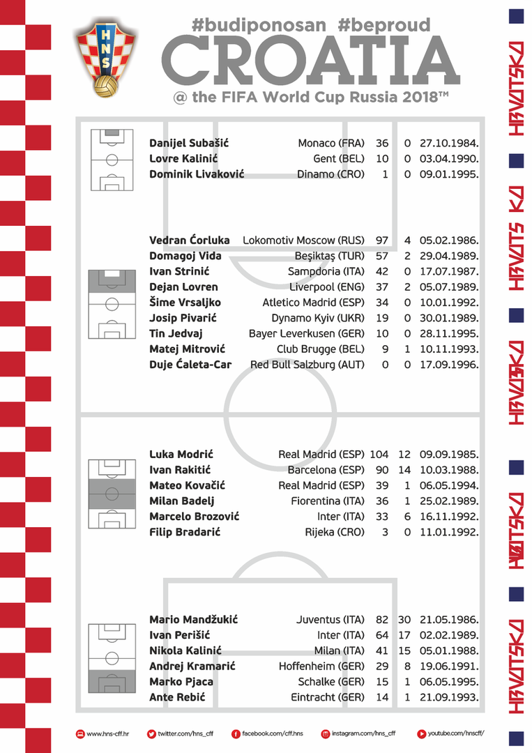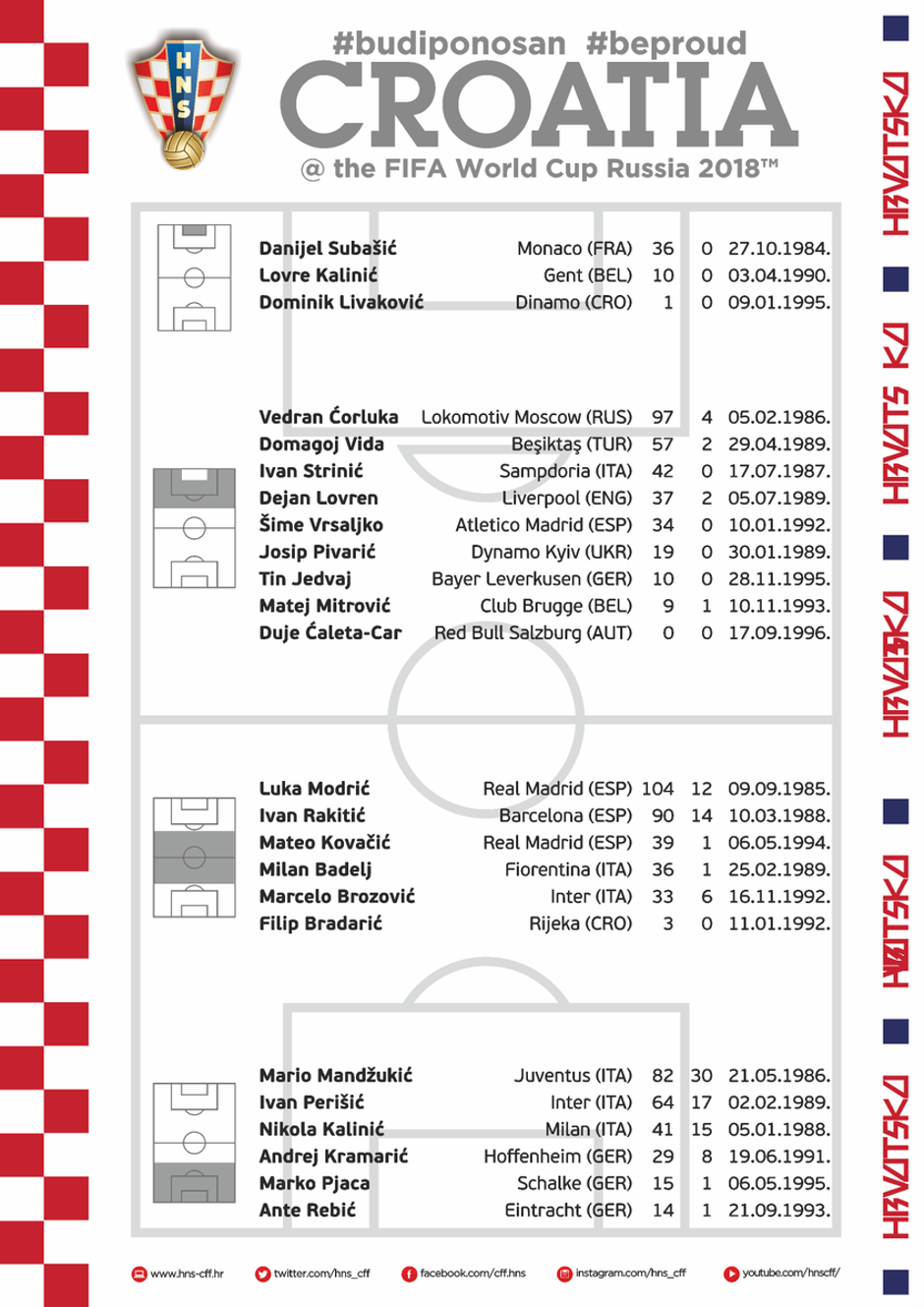 Sa šireg popisa otpali su: Karlo Letica, Borna Barišić, Zoran Nižić, Borna Sosa, Marko Rog, Mario Pašalić, Duje Čop i Ivan Santini.