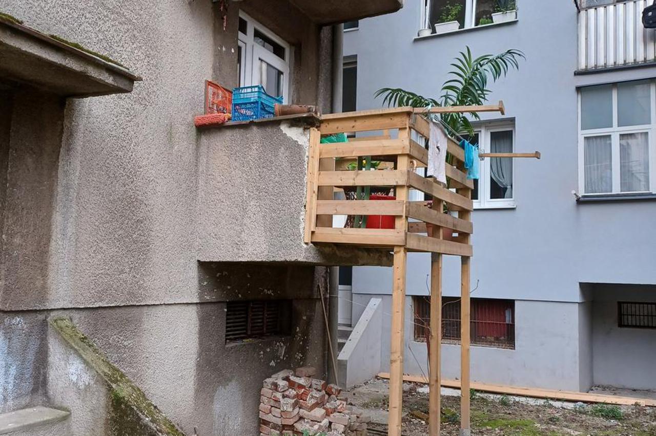 Društvenim mrežama danas se proširila fotografija jednog vrlo neobičnog balkona u širem centru Zagreba. Kako bi došao do kojeg kvadrata više, vlasnik je balkon proširio uz pomoć drvenih greda.