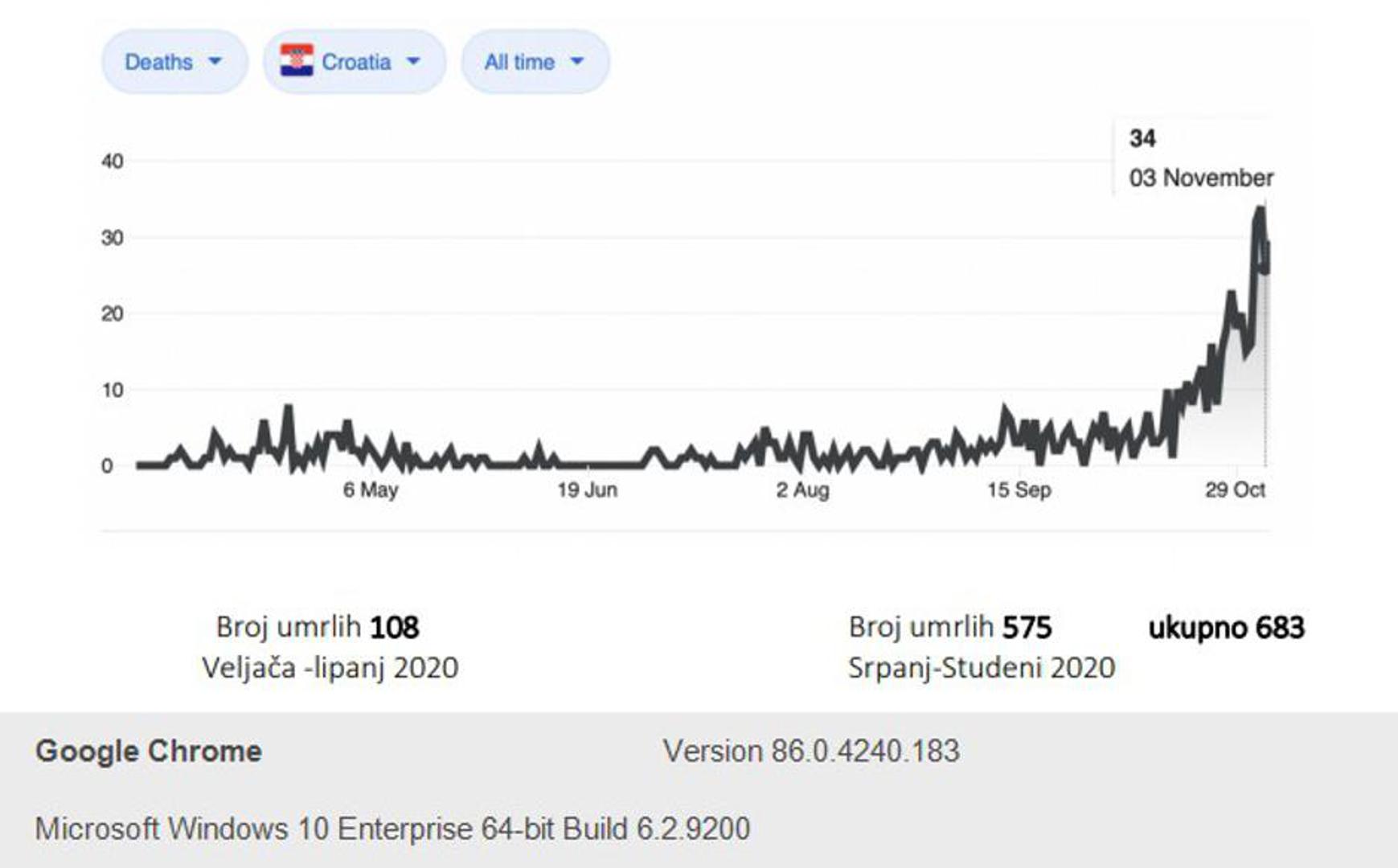 zanima me koje su vaše procjene o broju umrlih od covid-19 do kraja studenog u Hrvatskoj - je li to 1000 ili 1300 umrlih? Vi imate puno više podataka i biti ću sretan ako na temelju vaših procjena taj broj bude manji. Moja predviđanja o 1500 umrlih do kraja studenog su bazirana na podacima prikazanim u grafovima 1 i 2.