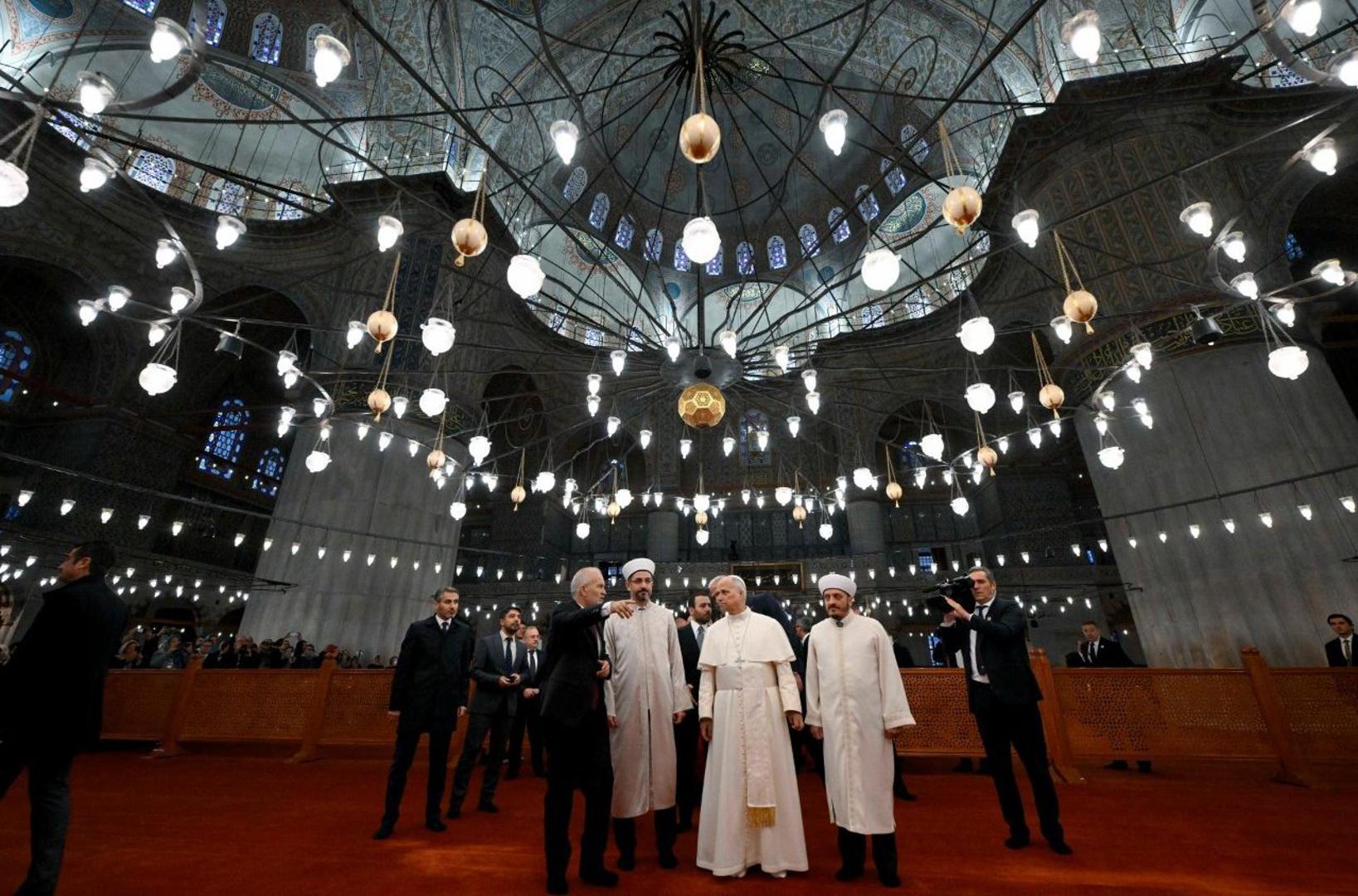 Tijekom kraće razgledbe Papa je promatrao kaligrafije koranskih stihova i monumentalni središnji svod visok četrdeset tri metra. Svod je oslonjen na četiri masivna stupa poznata kao slonove noge. Posjet Plavoj džamiji bio je Papin prvi korak u danu posvećenom dijalogu, razumijevanju i susretima s predstavnicima različitih religija i kršćanskih tradicija.