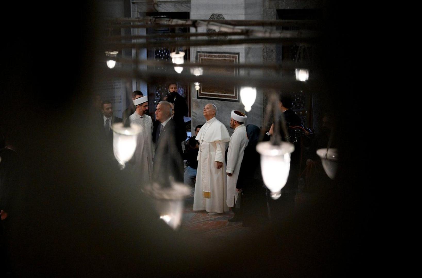 Papa je u džamiju ušao iz velike unutarnje čaršije gdje ga je dočekao predsjednik Uprave za vjerske poslove Turske Safi Arpaguş. Nakon kratkog razgovora poglavar Katoličke Crkve izuo je obuću, prema običaju muslimanskih vjernika, te ušao u prostrani molitveni prostor obasjan svjetlom 260 prozora. Tiskovni ured Svete Stolice priopćio je da je Papa „proživio posjet u tišini, u duhu sabranosti i slušanja, s dubokim poštovanjem prema mjestu i vjeri onih koji se ondje okupljaju na molitvu“, prenosi IKA.