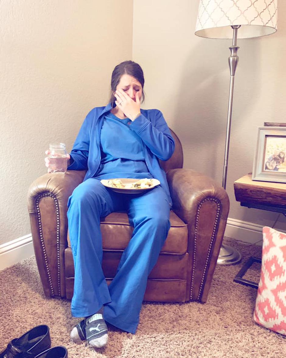 - Ubit će me zbog ove fotografije, ali možemo li pridati malo pažnje medicinskim sestrama - započela je priču Laura, koja je fotografirala svoju sestru Caty DiBari nakon što je završila četvrtu smjenu zaredom.