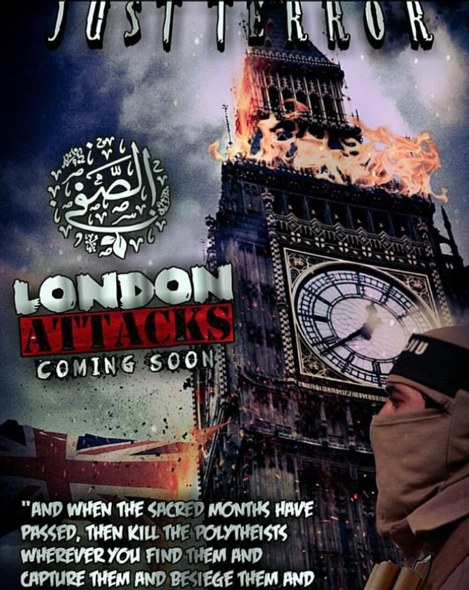 Na prvome je prikazan bombaš samoubojica, a u pozadini iza njega je simbol Velike Britanije Big Ben uz najavu da uskoro slijede napadi u Londonu.