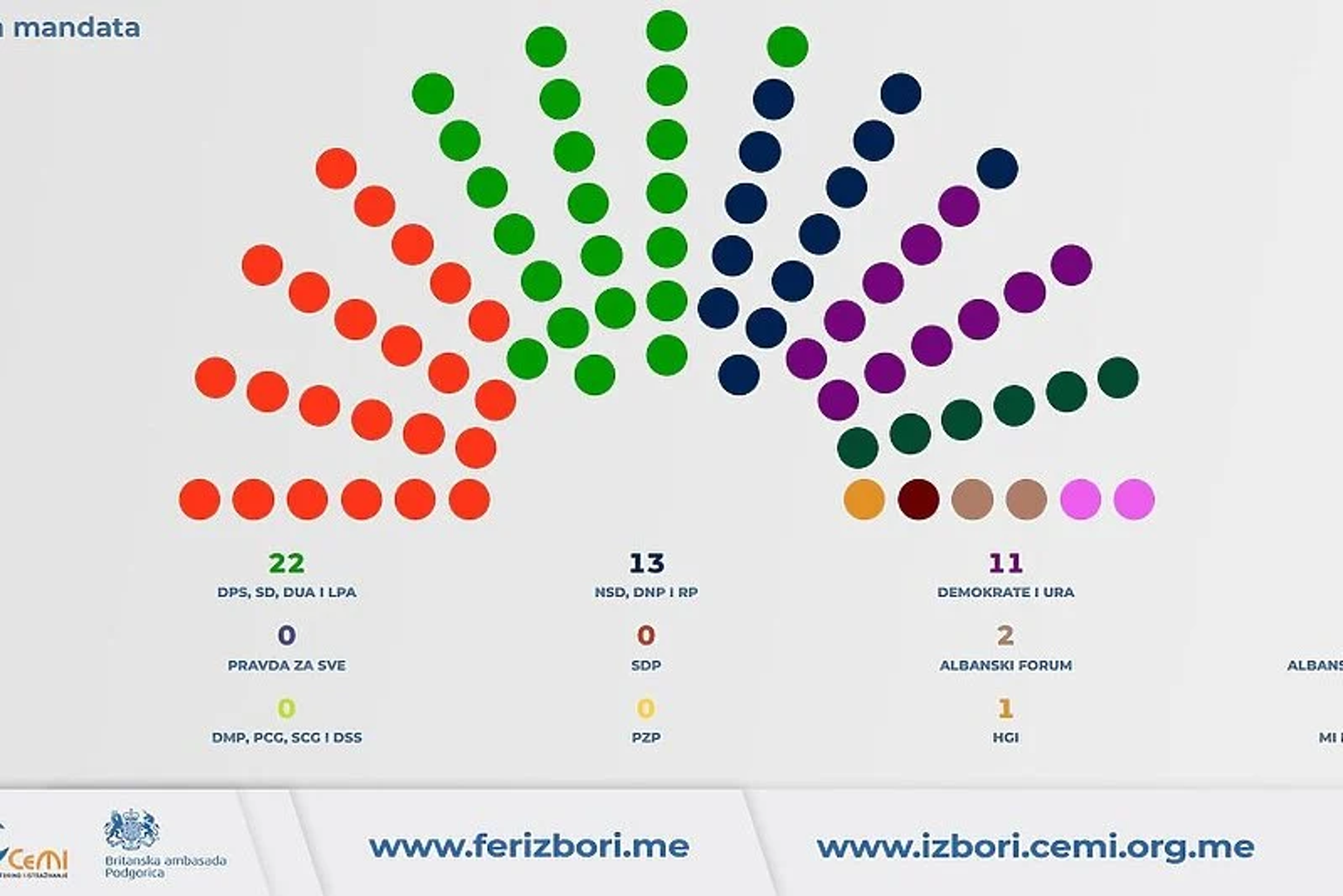 Prema podacima Centra za monitoring i istraživanje, Pokret Europa sad osvojio je 25,6 posto glasova te će u novom sazivu Skupštine Crne Gore imati 23 mandata.