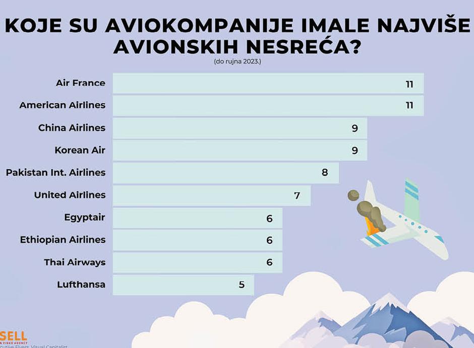 Prema istraživanju koje je objavio Executive Flyers, Visual Capitalist je rangirao globalne zrakoplovne kompanije po broju nesreća. Air France i American Airlines su na vrhu liste s 11 nesreća (dvije nesreće American Airlinesa i dvije United Airlinesa dogodile su se tijekom terorističkog napada 11. rujna 2001.).