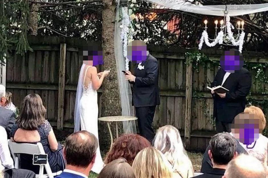 Fotografija mladenaca koji stoje ispred svojih gostiju usred ceremonije vjenčanja šokirala je mnoge.