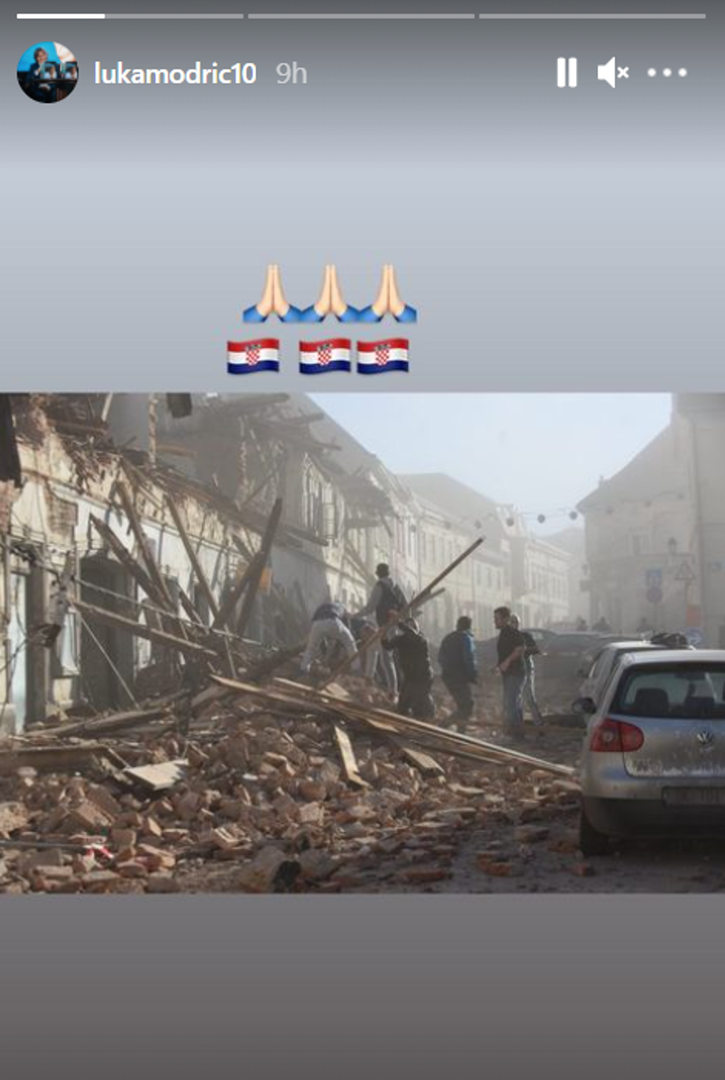Već su se javili brojni sportaši, a oglasio se i kapetan hrvatske nogometne reprezentacije Luka Modrić. Veznjak Reala na Instagramu je objavio emotikon koji pokazuje da se moli za Hrvatske te potresne fotografije potresa. To je podijelio s 19 milijuna svojih pratitelja.