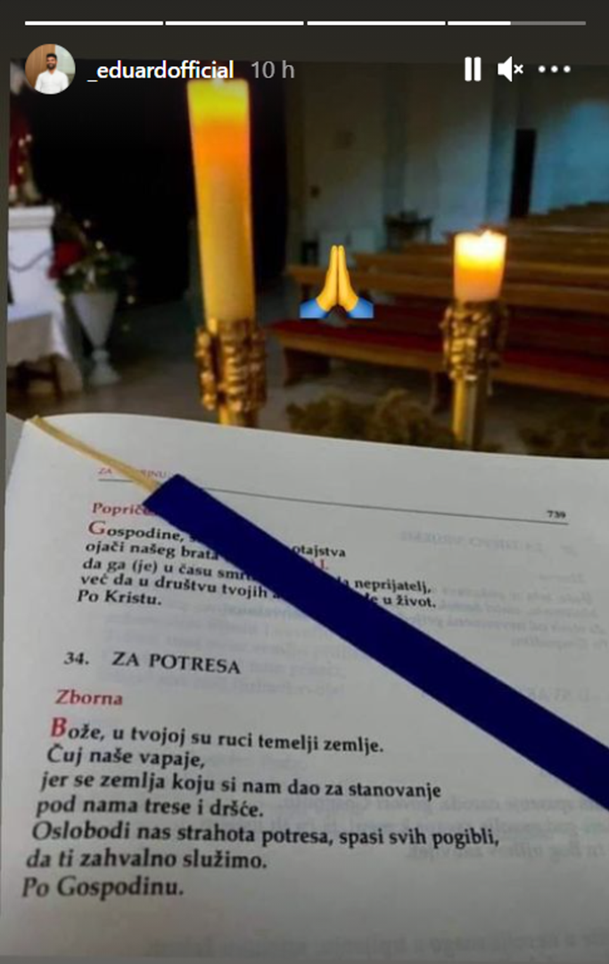 A iz Brazila se javio Eduardo da Silva, nekadašnji napadač hrvatske reprezentacije. I on je podijelio fotografije te poslao prigodnu molitvu:
