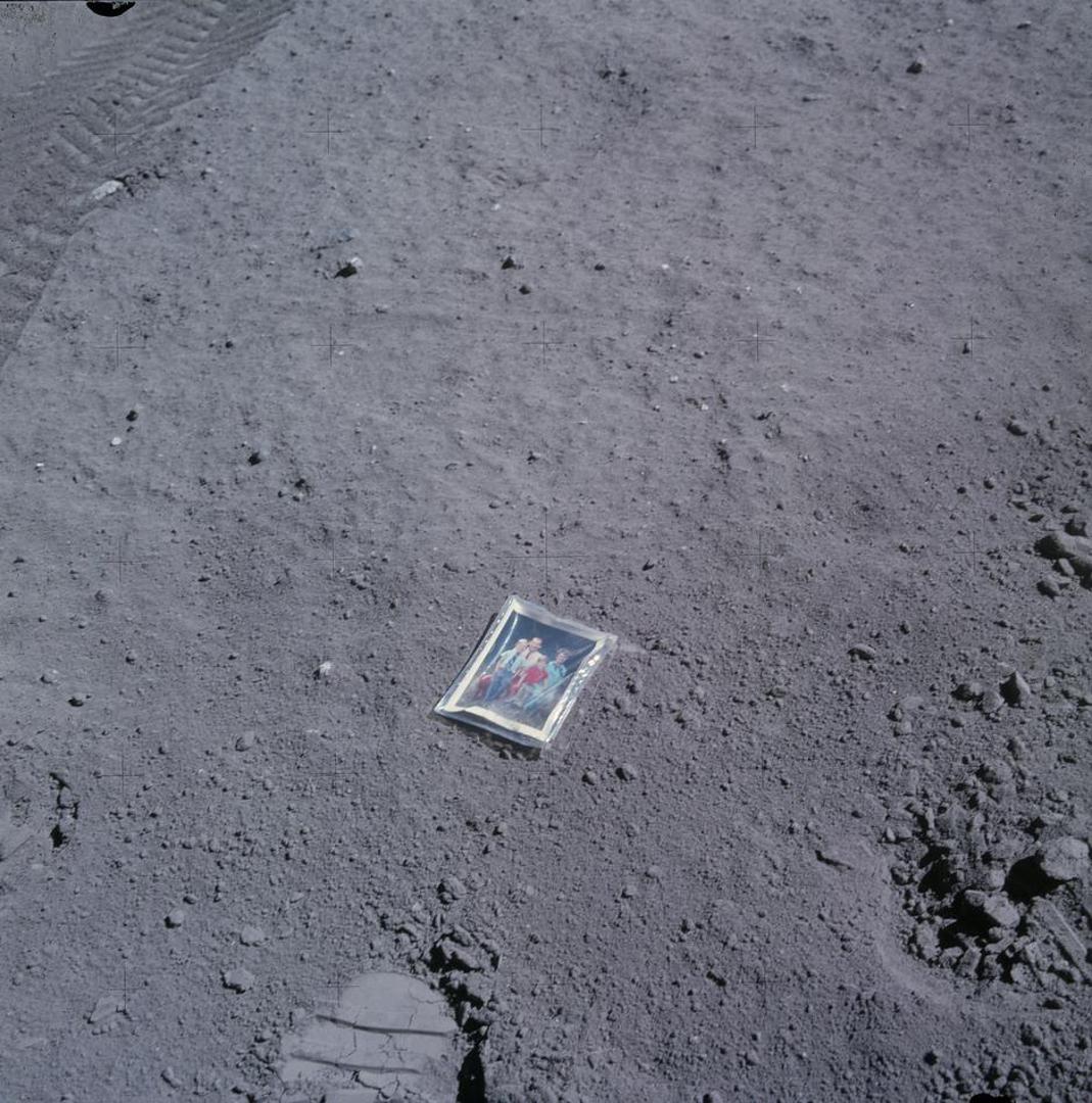 Astronauti su tijekom misija snimili tisuće fotografija koje su trajan dokaz boravka na Mjesecu, ali Charles Duke je tijekom Apollo 16 misije na Mjesec ponio fotografiju sa Zemlje. Na slici su on, supruga Dorothy i njihovi sinovi. No, zbog Sunčeva zračenja fotografija je sada izbrisana.
