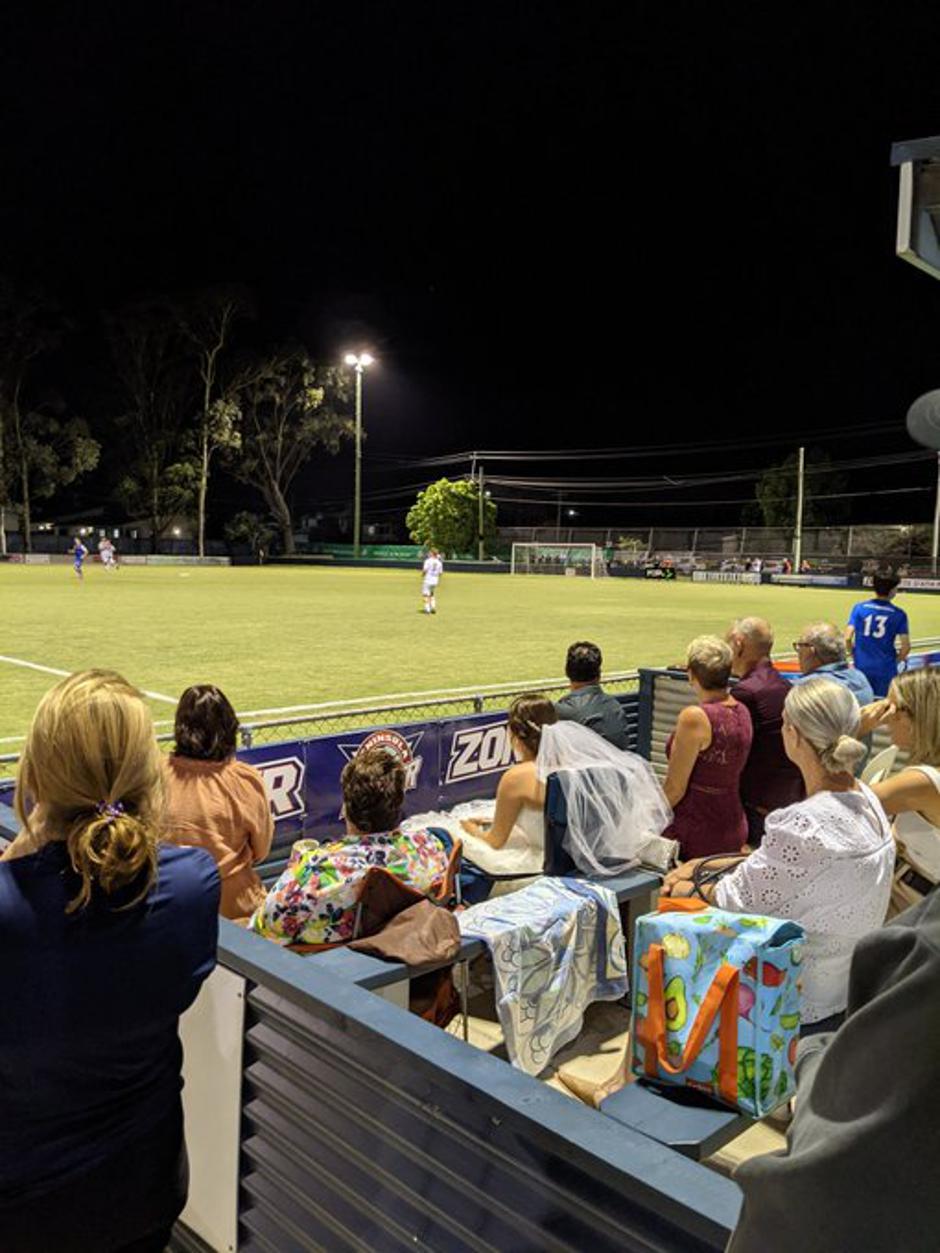 Golman je odlučio odraditi vjenčanje, a potom se uputiti na utakmicu. Draga je na to sve pristala i bodrila ga u vjenčanici s tribina. Riječ je o utakmici NPL Queenslanda.