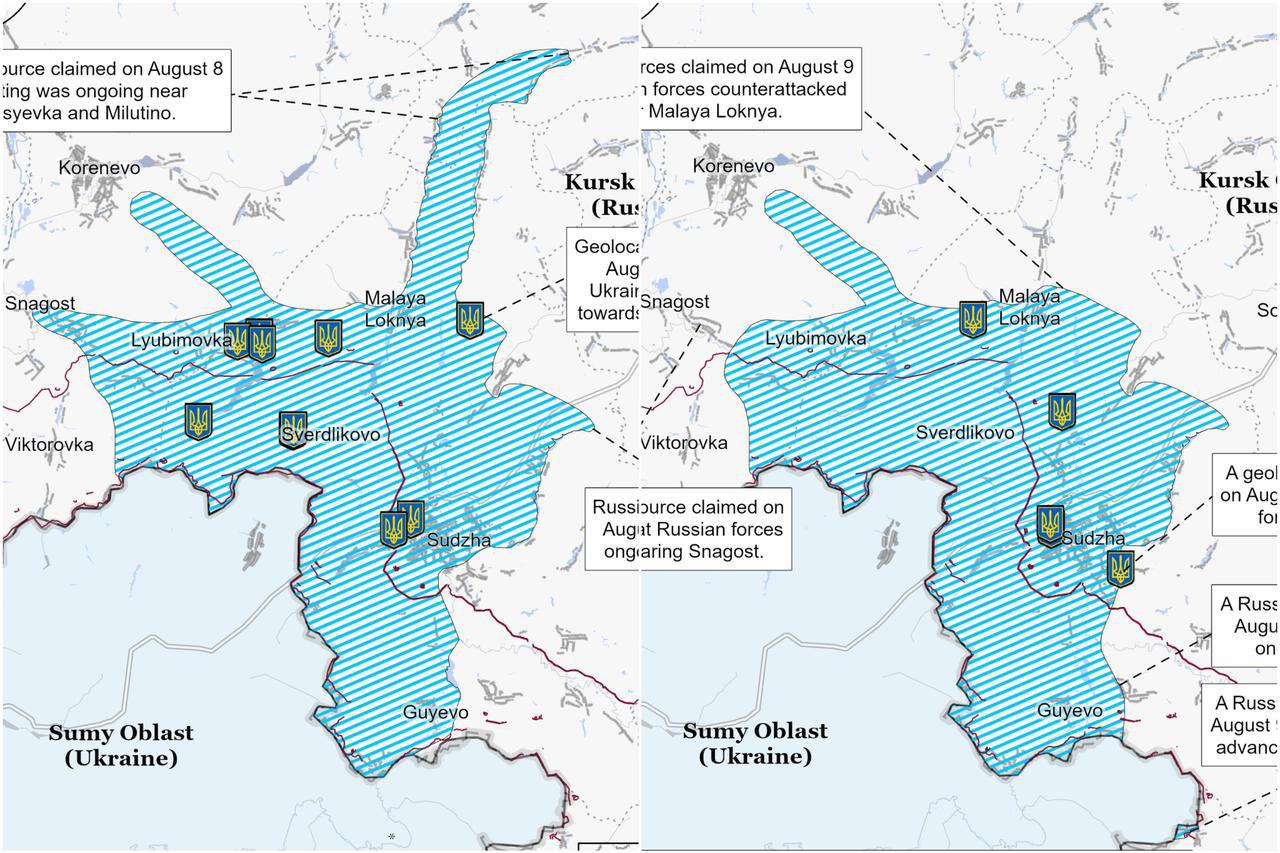 ISW ističe kako su ruski izvori 9. kolovoza tvrdili da su ukrajinske snage napredovale dalje na istok u Kurskoj oblasti, ali vjerojatno više ne djeluju tako sjeverno ili zapadno kao što se tvrdilo 8. kolovoza