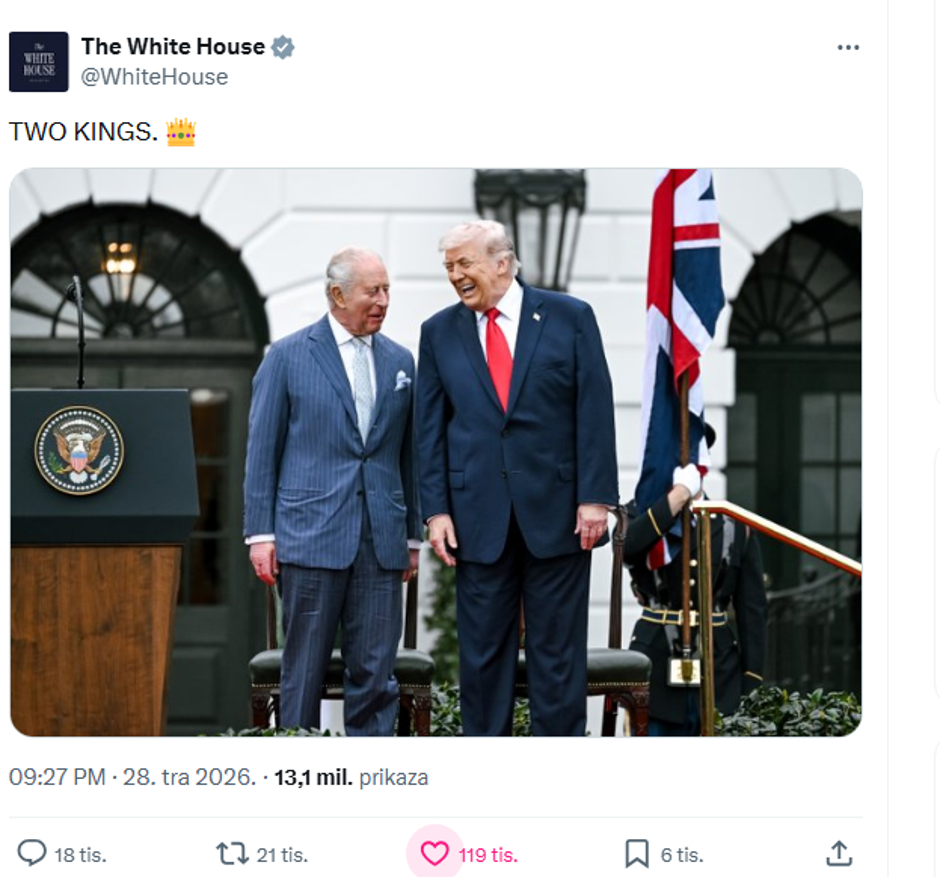 Ovo je tek drugi put da se britanski monarh obratio američkom Kongresu, kraljica Elizabeta II. učinila je to 1991. godine. Charlesov četverodnevn državni posjet odvija se u trenutku napetih odnosa Londona i Washingtona zbog rata s Iranom i Trumpovih kritika na račun britanskog premijera Keira Starmera.
