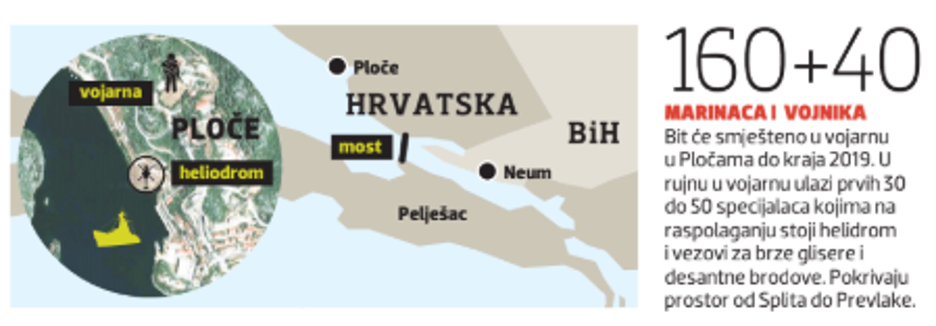 Riječ je o razmještanju prvog dijela mornaričke satnije u jačini 30 do 50 specijalaca koji će biti useljeni u obnovljenu vojarnu “Neretva”, a koja će od rujna dobiti novo ime “116. brigade”. Ministar Krstičević potvrđuje da je riječ o satniji koja će do kraja 2019. u svom sastavu imati oko 160 hrvatskih “marinaca” i još 40-ak drugih vojnika.