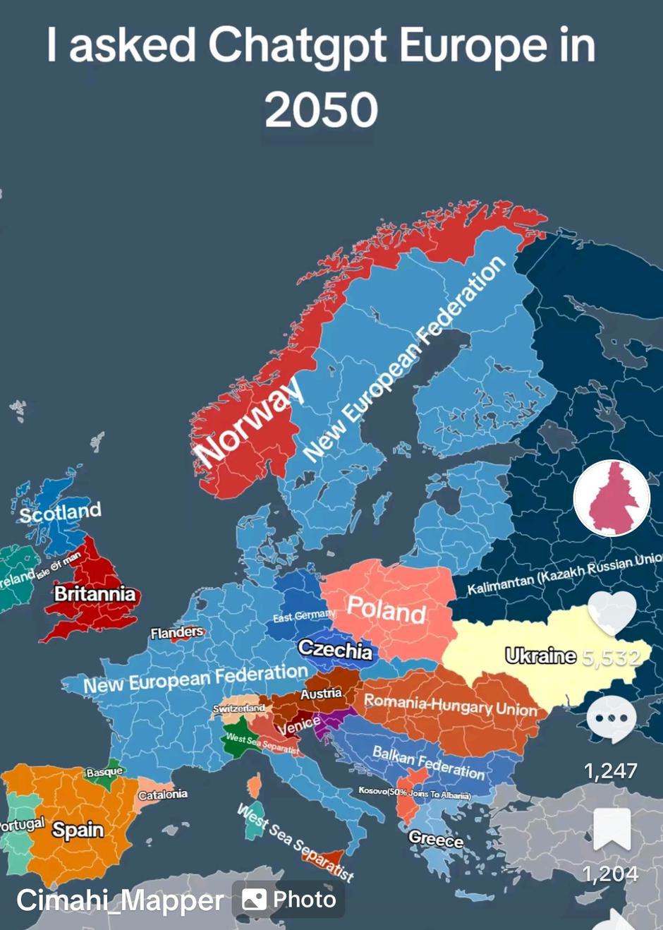 FOTO: Kako ChatGPT vidi granice u Europi u 2050. godini