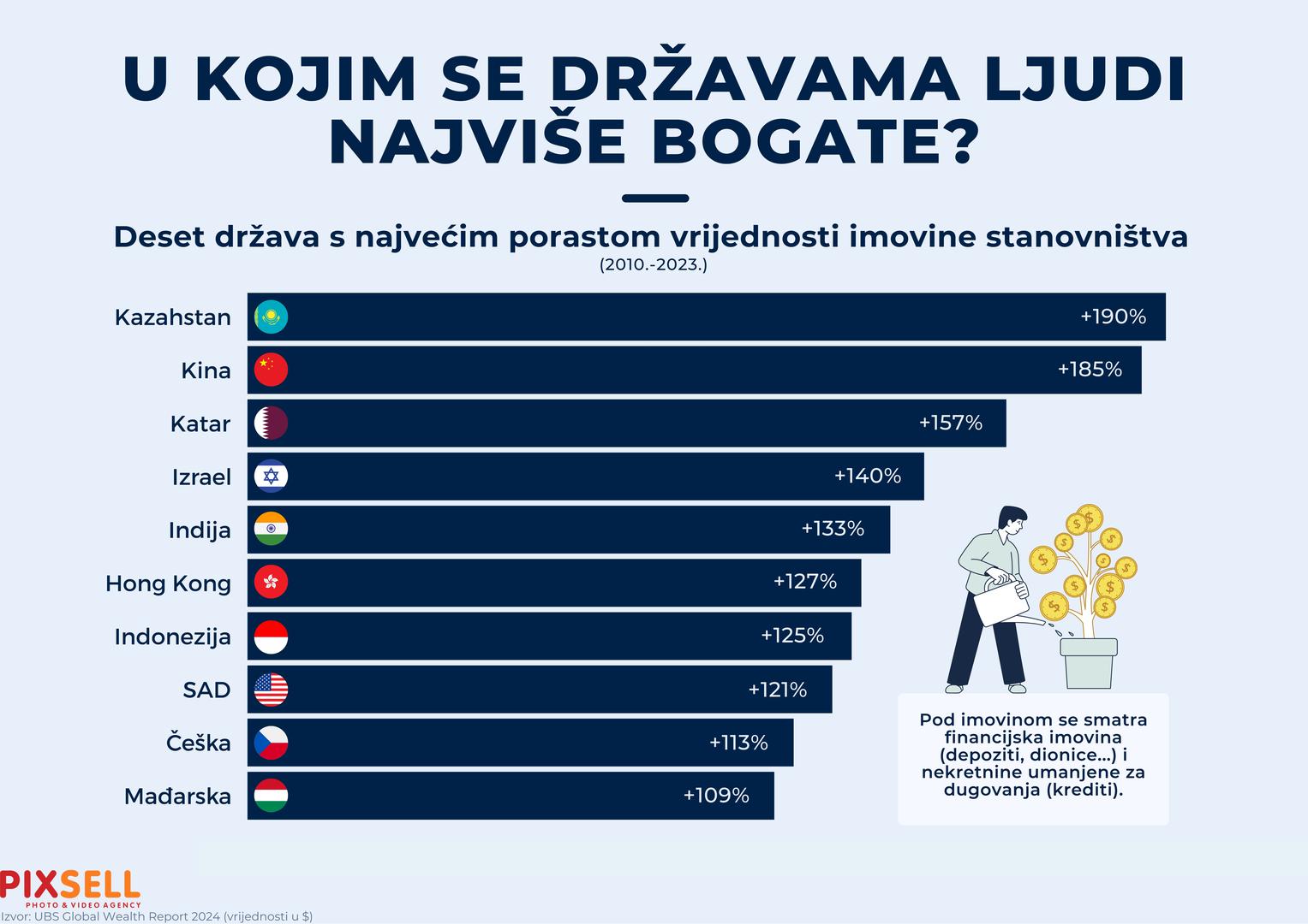 Prema podacima od 2010. do 2023., najveći porast vrijednosti imovine stanovništva zabilježen je u tri države - Kazahstanu, Kini i Kataru. Ovaj porast uključuje financijsku imovinu (poput depozita i dionica) te vrijednost nekretnina umanjenih za dugove.