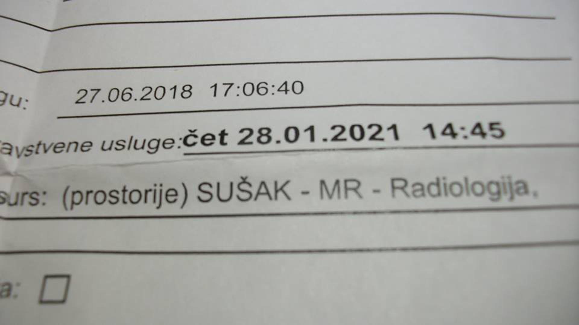 Jedan je korisnik Facebooka prošli tjedan objavio status koji još jednom na najbolji način pokazuje u kakvom je stanju hrvatsko zdravstvo. Naime, on se u lipnju ove godine prijavio na magnetsku rezonancu riječkog KBC-a na Sušaku, a termin koji je dobio je 28. siječnja 2021., dakle za 3 godine!